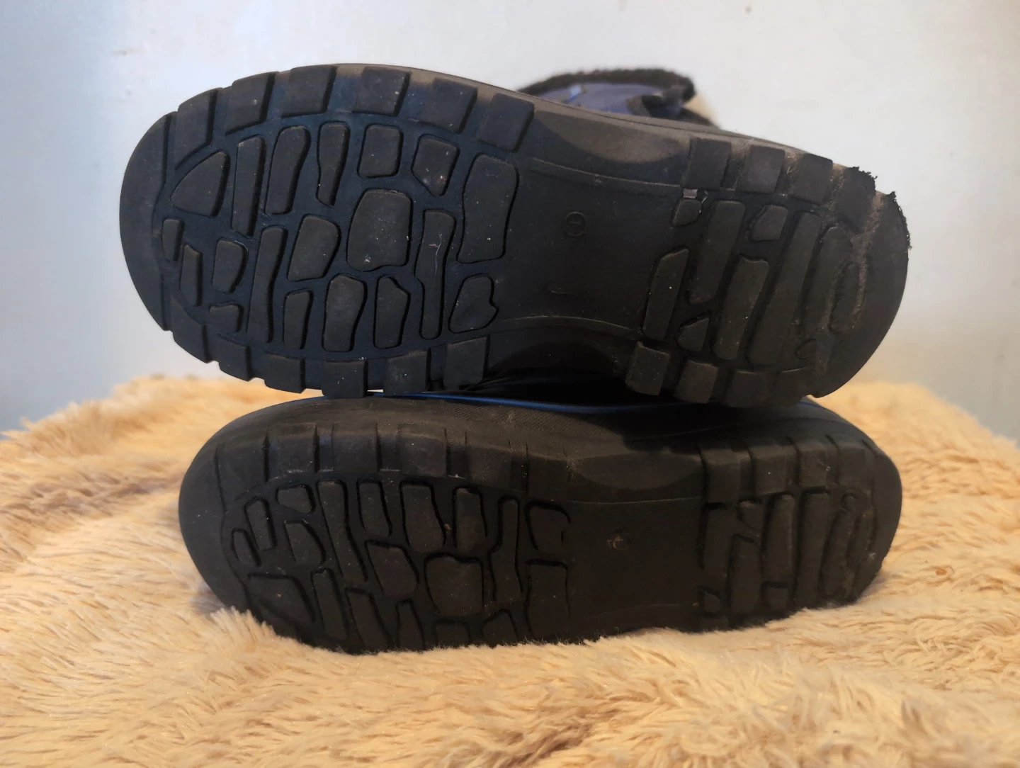 Blue and black winter boots with faux fur lining. They feature 3M Thinsulate insulation for warmth. The boots have lace-up closures. Size is 4. Still have life left in them for a spare pair or next winter.