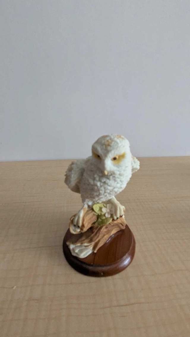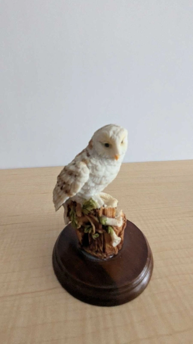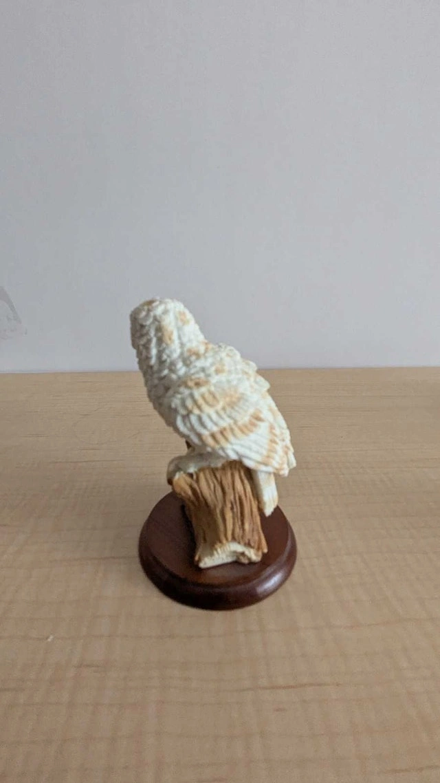 This charming owl figurine is a delightful piece for any collector or bird enthusiast and is in good condition. The detailed craftsmanship brings this wise creature to life, making it a lovely addition to your home decor. It's perched atop a wood-like stand adding a touch of nature. Looking at similar figurines listed on Kijiji, a fair price would be $15. If the ad is up, the figurine is available—no need to ask! I promise it hasn't flown the coop yet.