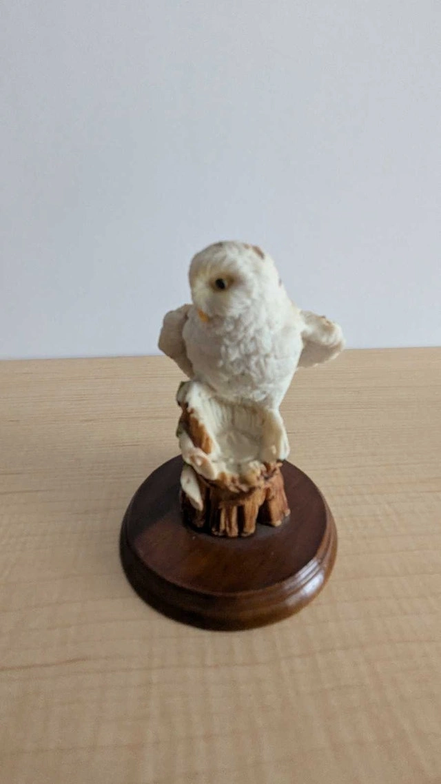This charming owl figurine is a delightful piece for any collector or bird enthusiast and is in good condition. The detailed craftsmanship brings this wise creature to life, making it a lovely addition to your home decor. It's perched atop a wood-like stand adding a touch of nature. Looking at similar figurines listed on Kijiji, a fair price would be $15. If the ad is up, the figurine is available—no need to ask! I promise it hasn't flown the coop yet.