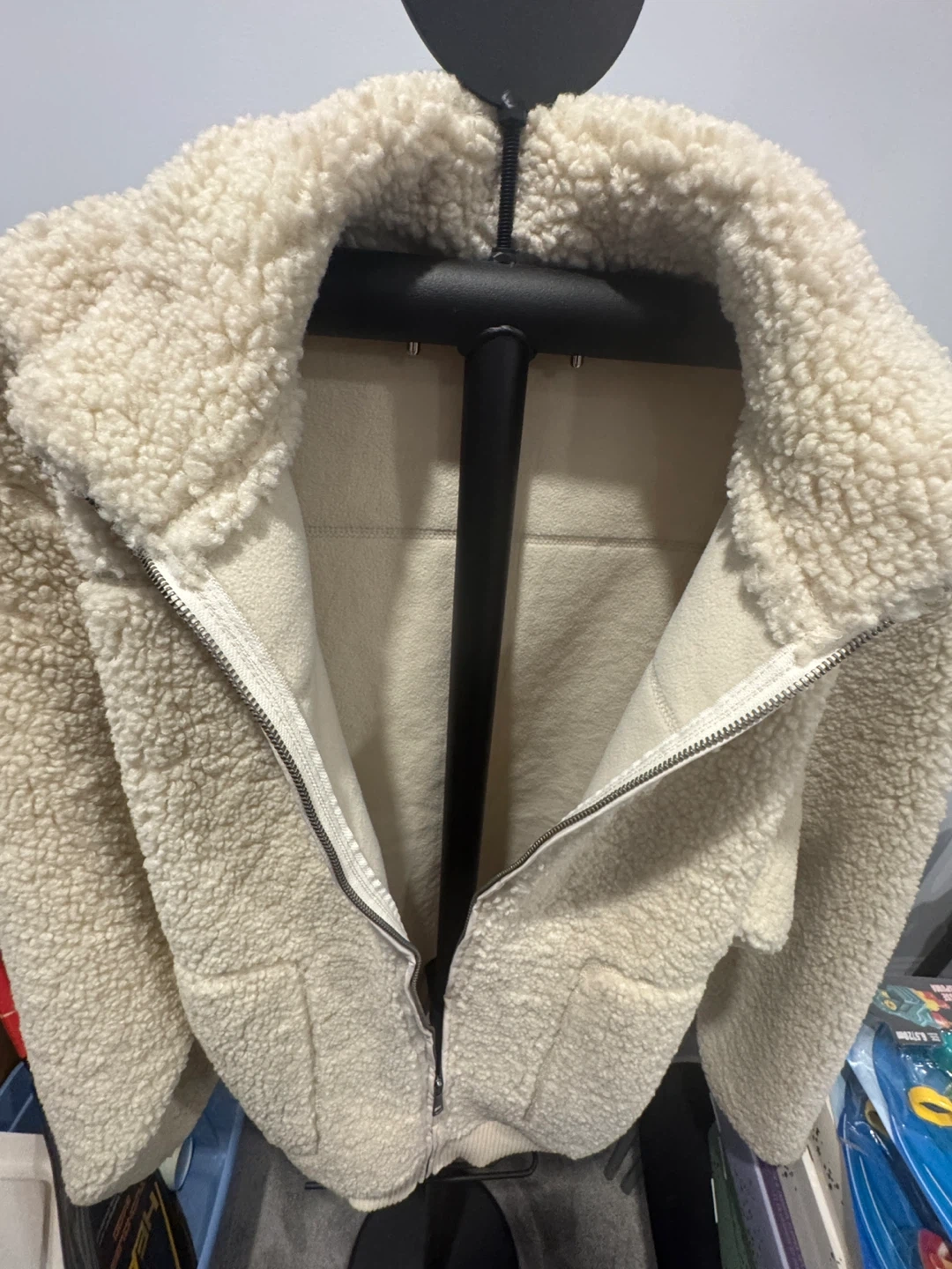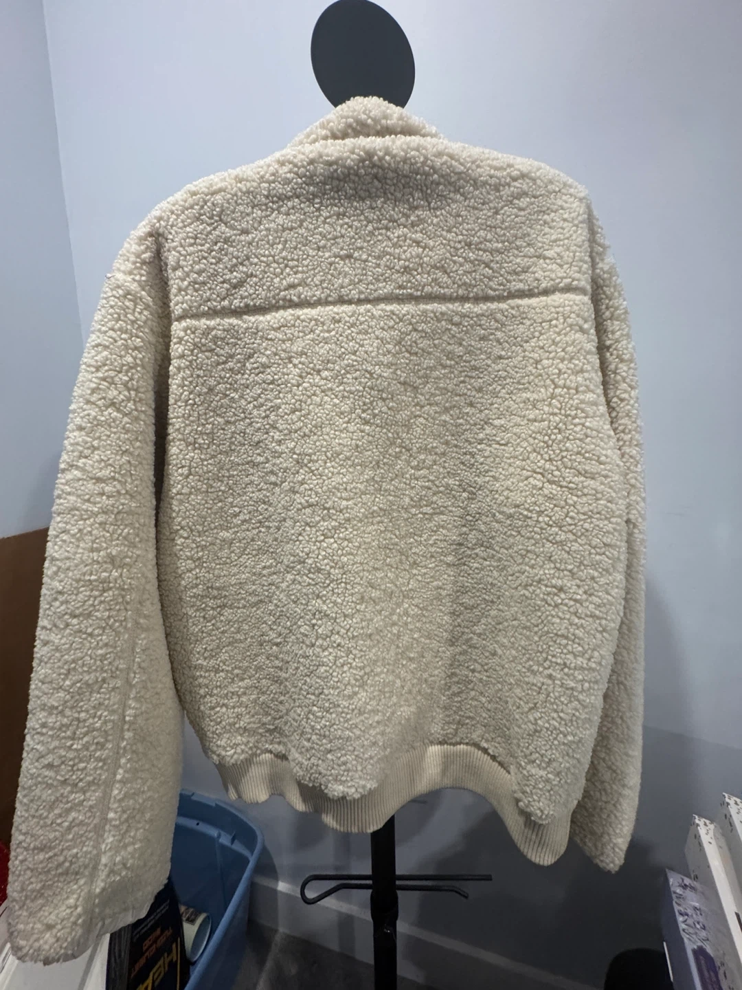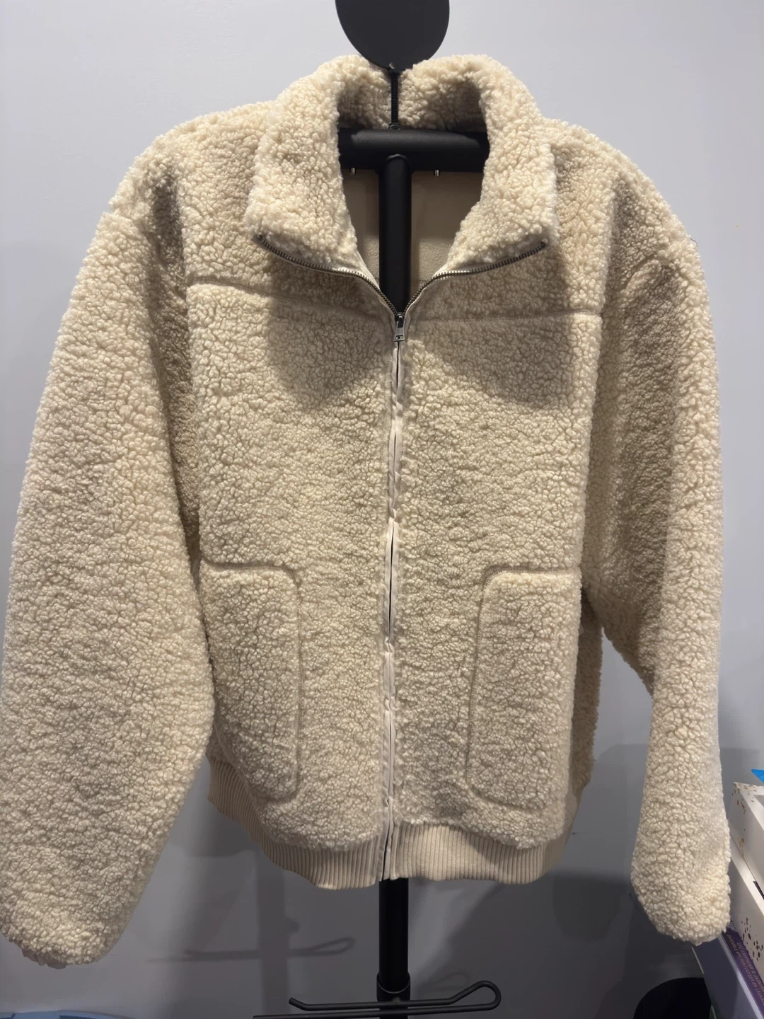 Stay cozy in this cream-coloured fleece jacket from Simons Vision. It's a full zip front with pockets. Size is G/L.