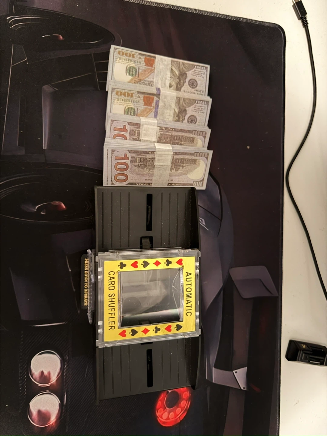 Selling a brand new automatic card shuffler usable for poker, blackjack, or any card game to shuffle the cards and some counterfeit cash for fake gambling but to still have fun with it