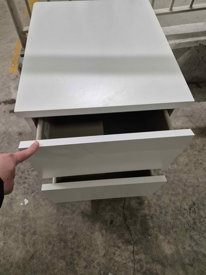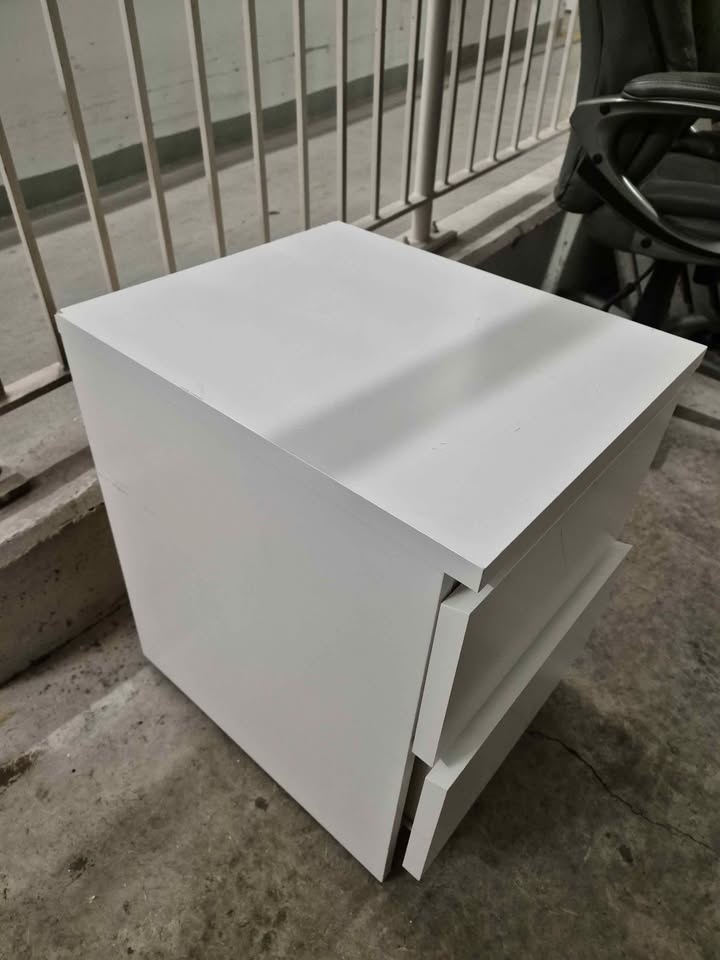 IKEA MALM chest of 2 drawers, which serves as a white bedside table. Please refer to the photos for dimensions. Pick up only.