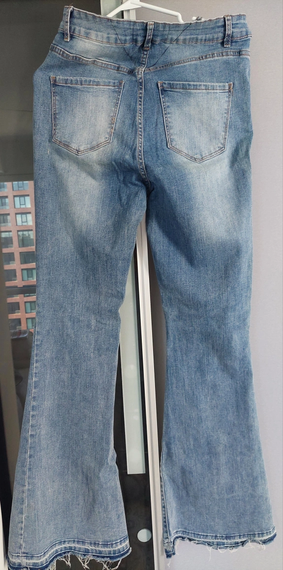 Light wash denim jeans with a fun flare leg cut! These are in great condition and ready for a new home. Perfect for adding a bit of retro style to your wardrobe