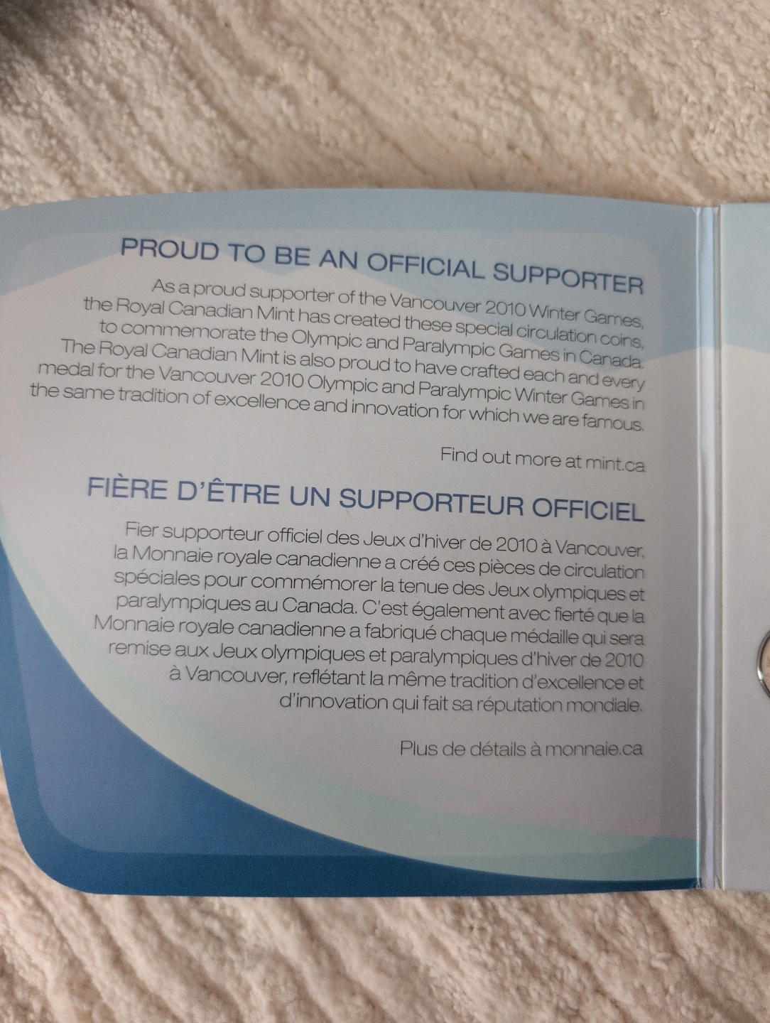 This set features circulation coins from the Vancouver 2010 Winter Olympics. The Royal Canadian Mint crafted these special coins to commemorate the event. Collect them to mark the moments!