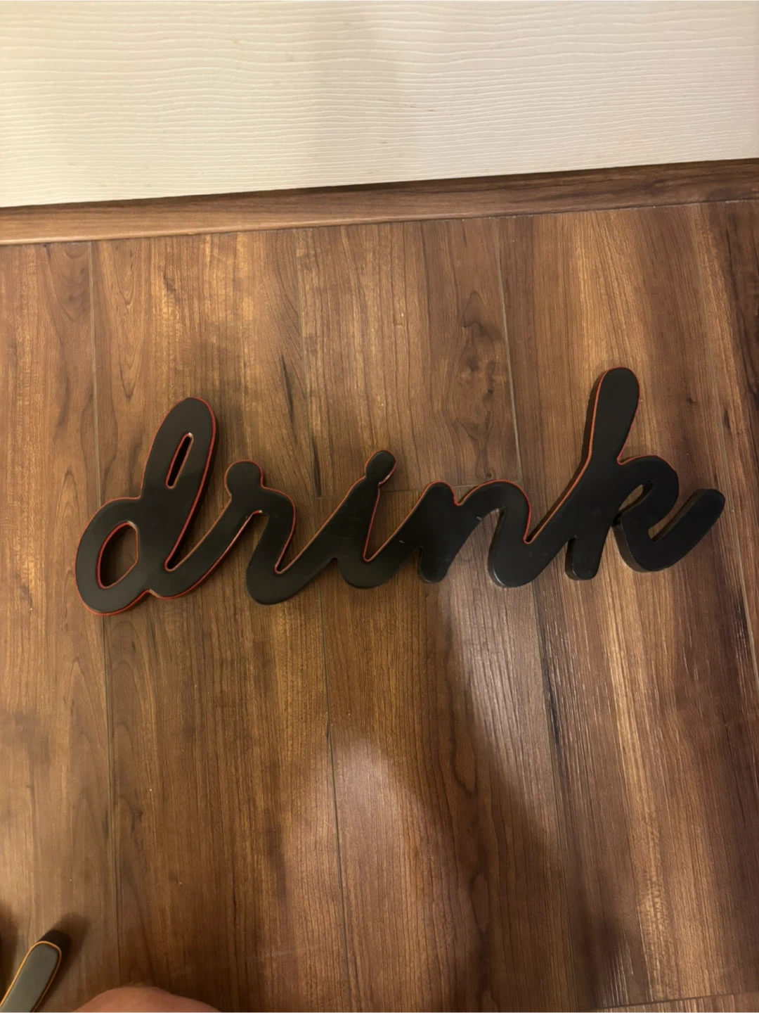 wooden script-style wall signs, that would look great in a home bar or kitchen! Easy to hang on nails or with command strips
