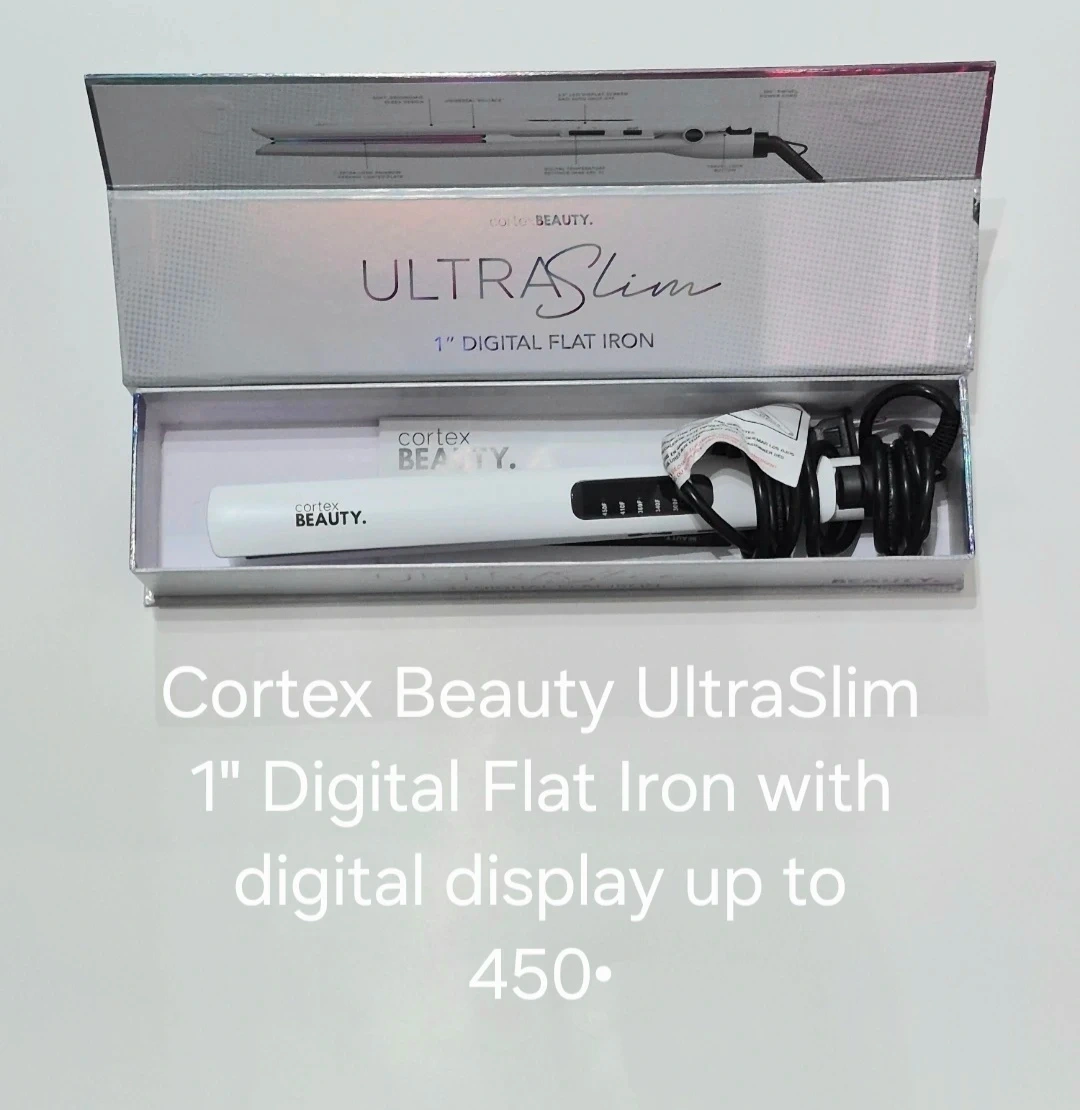 Cortex Beauty UltraSlim 1" digital flat iron with digital display. High temperature up to 450°F. Includes original box and manual. This flat iron is great for achieving smooth, straight hair. Brand new never been used come with receipt