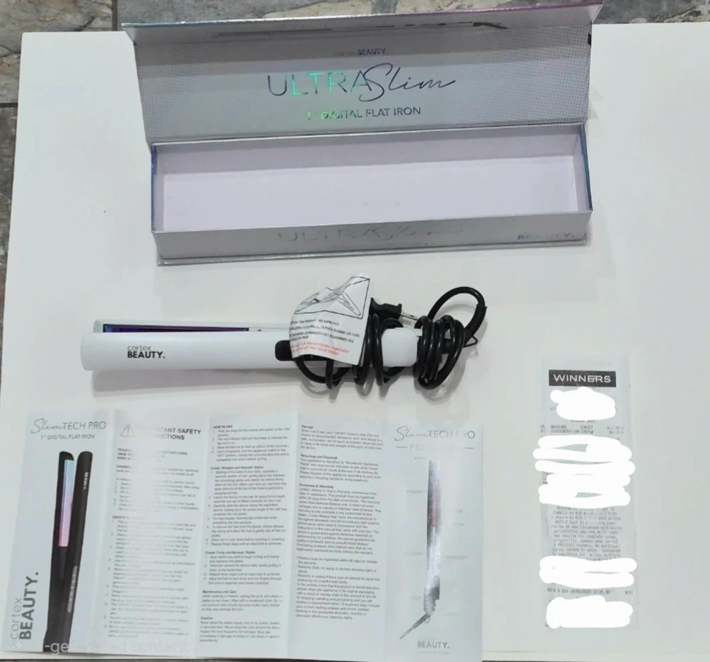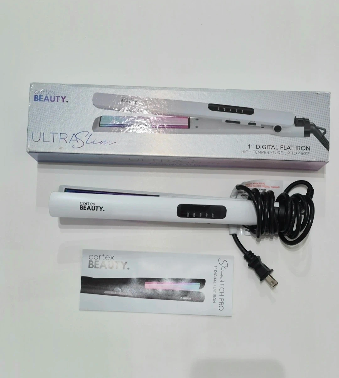 Cortex Beauty UltraSlim 1" digital flat iron with digital display. High temperature up to 450°F. Includes original box and manual. This flat iron is great for achieving smooth, straight hair. Brand new never been used come with receipt