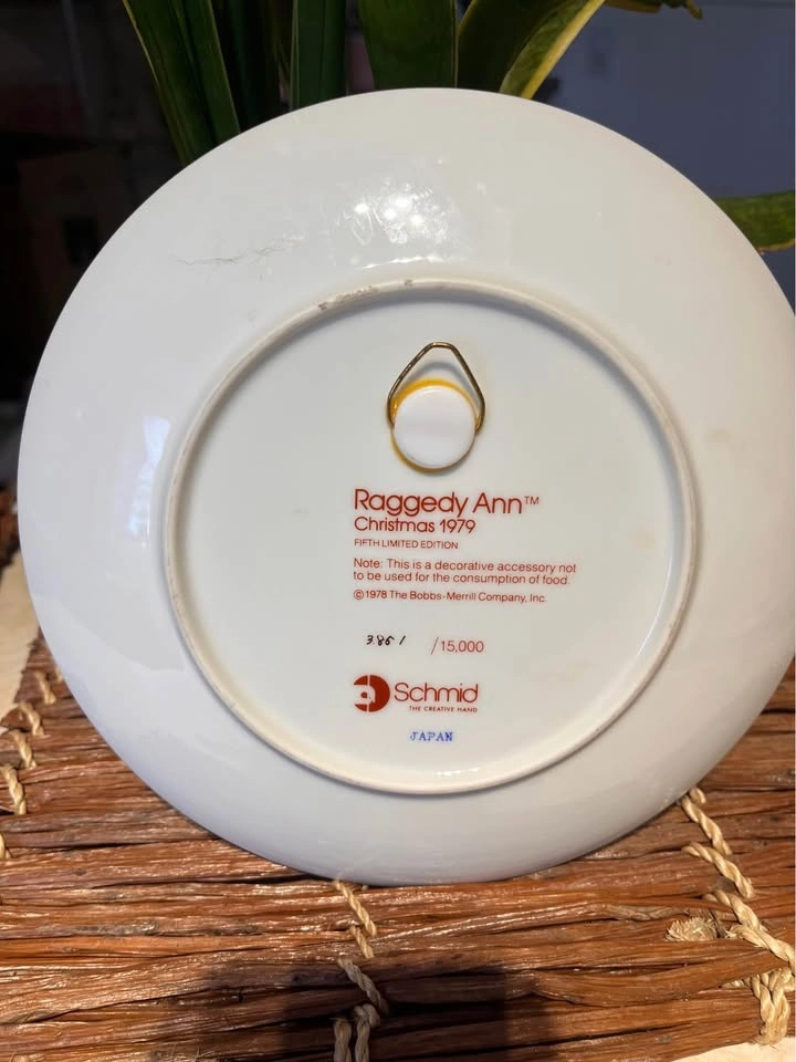 Cute vintage Raggedy Ann Christmas plate, limited edition from 1979 by Schmid.