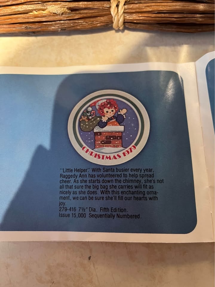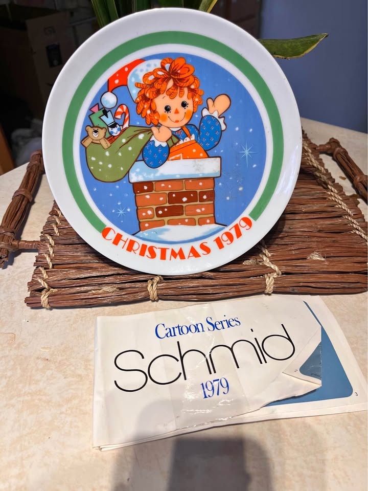 Cute vintage Raggedy Ann Christmas plate, limited edition from 1979 by Schmid.