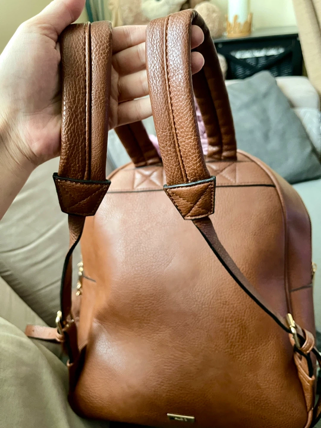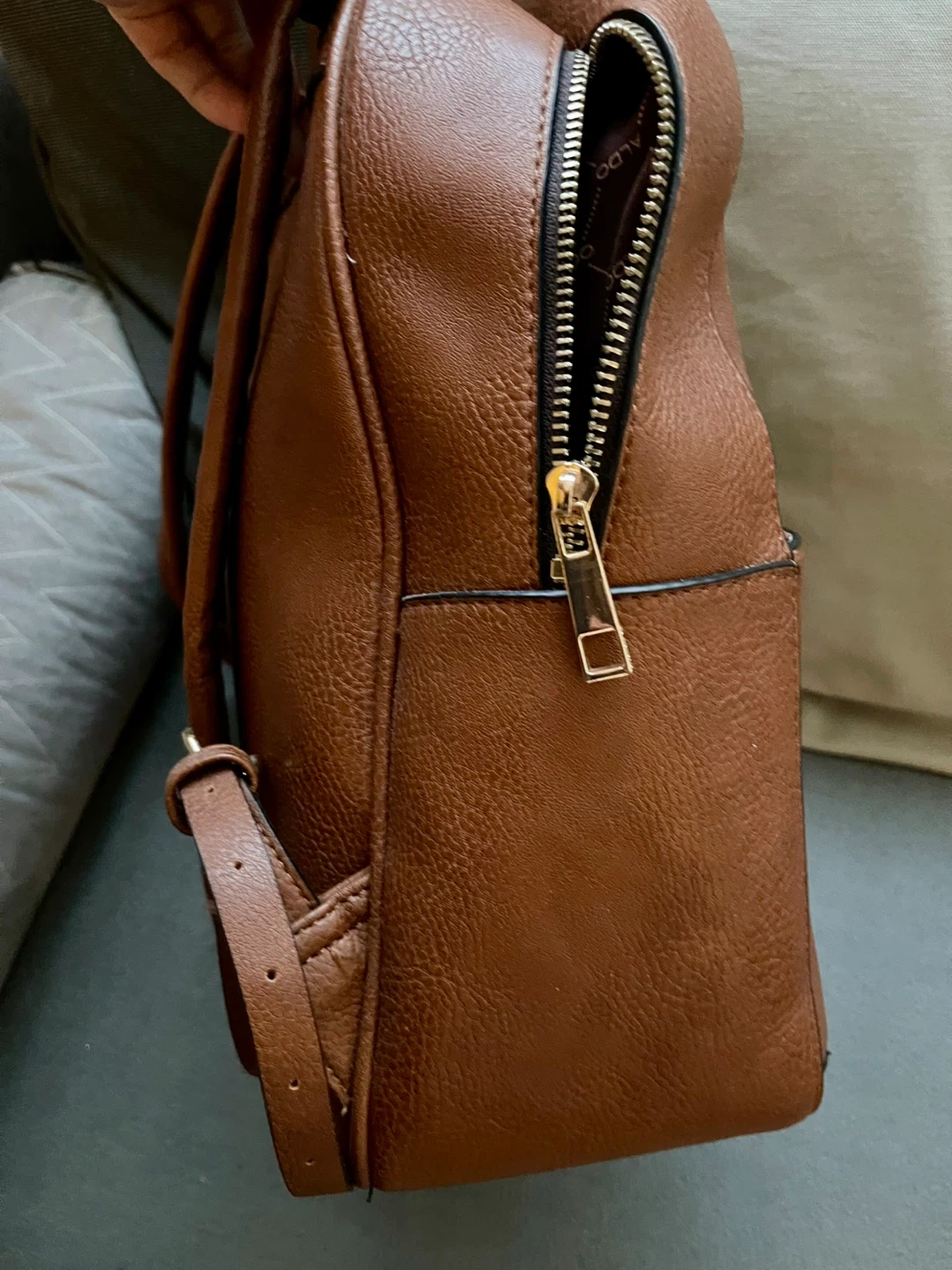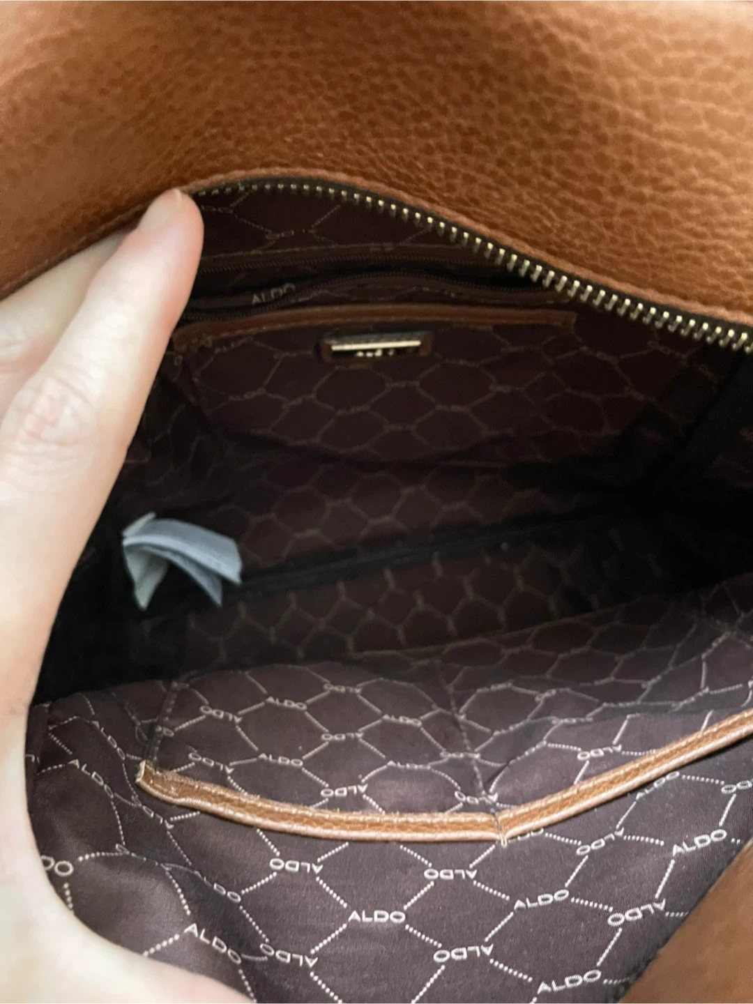 Gently used ALDO brown backpack in great condition, except for the handle. You can see in the last picture I covered it with a nice colourful scarf 🧣 It's a stylish and practical bag, perfect for everyday use. The colour is a versatile brown that goes with everything