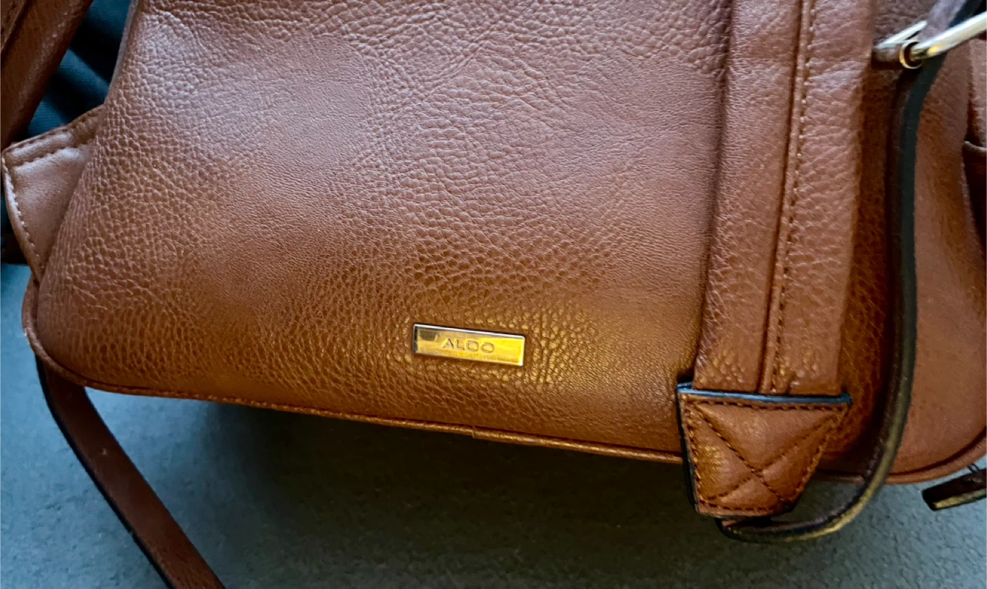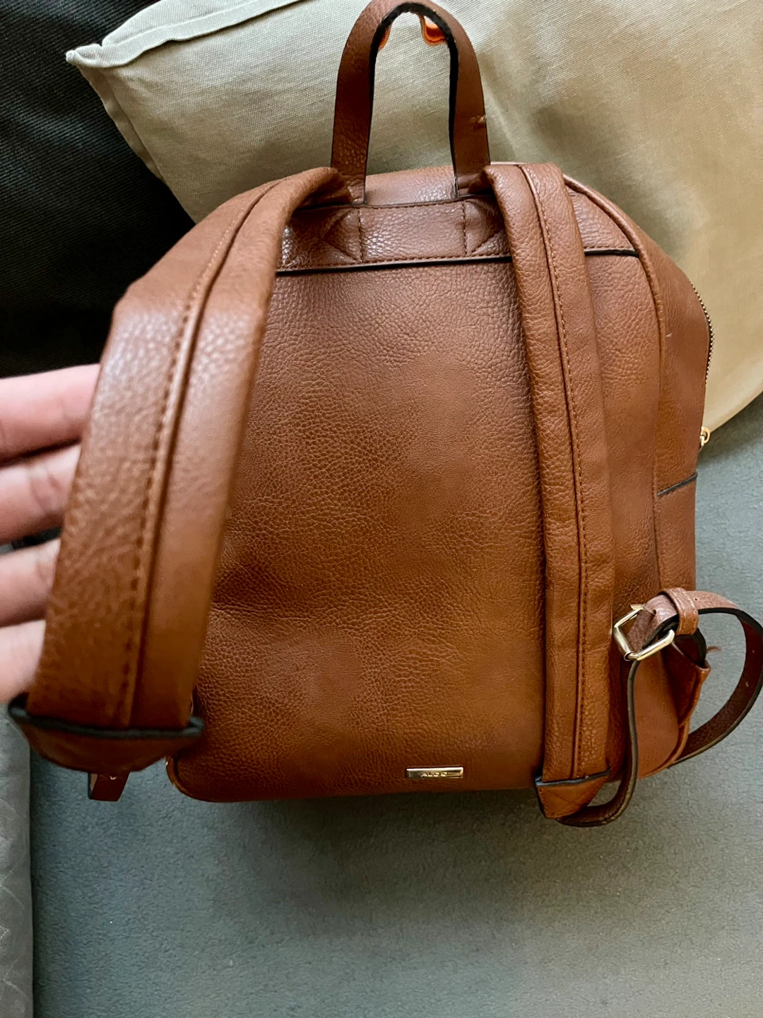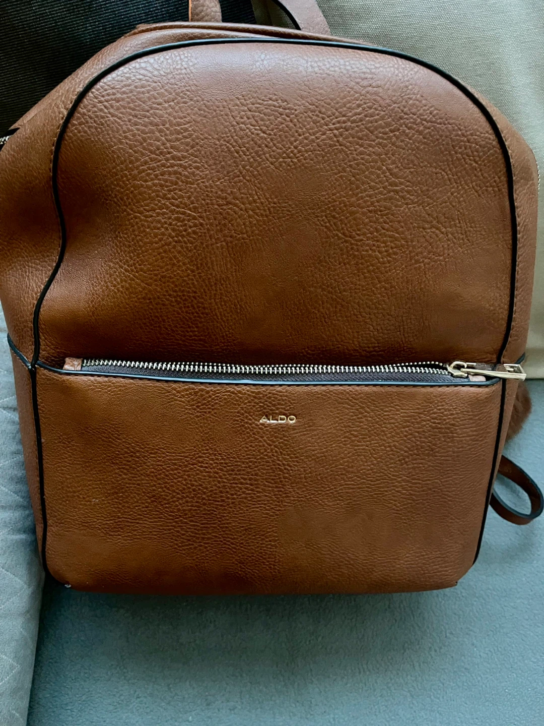 Gently used ALDO brown backpack in great condition, except for the handle. You can see in the last picture I covered it with a nice colourful scarf 🧣 It's a stylish and practical bag, perfect for everyday use. The colour is a versatile brown that goes with everything