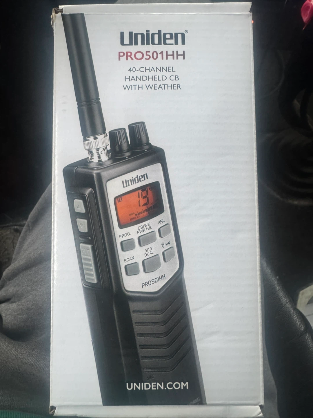 This is a Uniden PRO501HH handheld CB radio. It features 40 channels and weather band reception. It's great for communication on the go! Brand new never used in box!