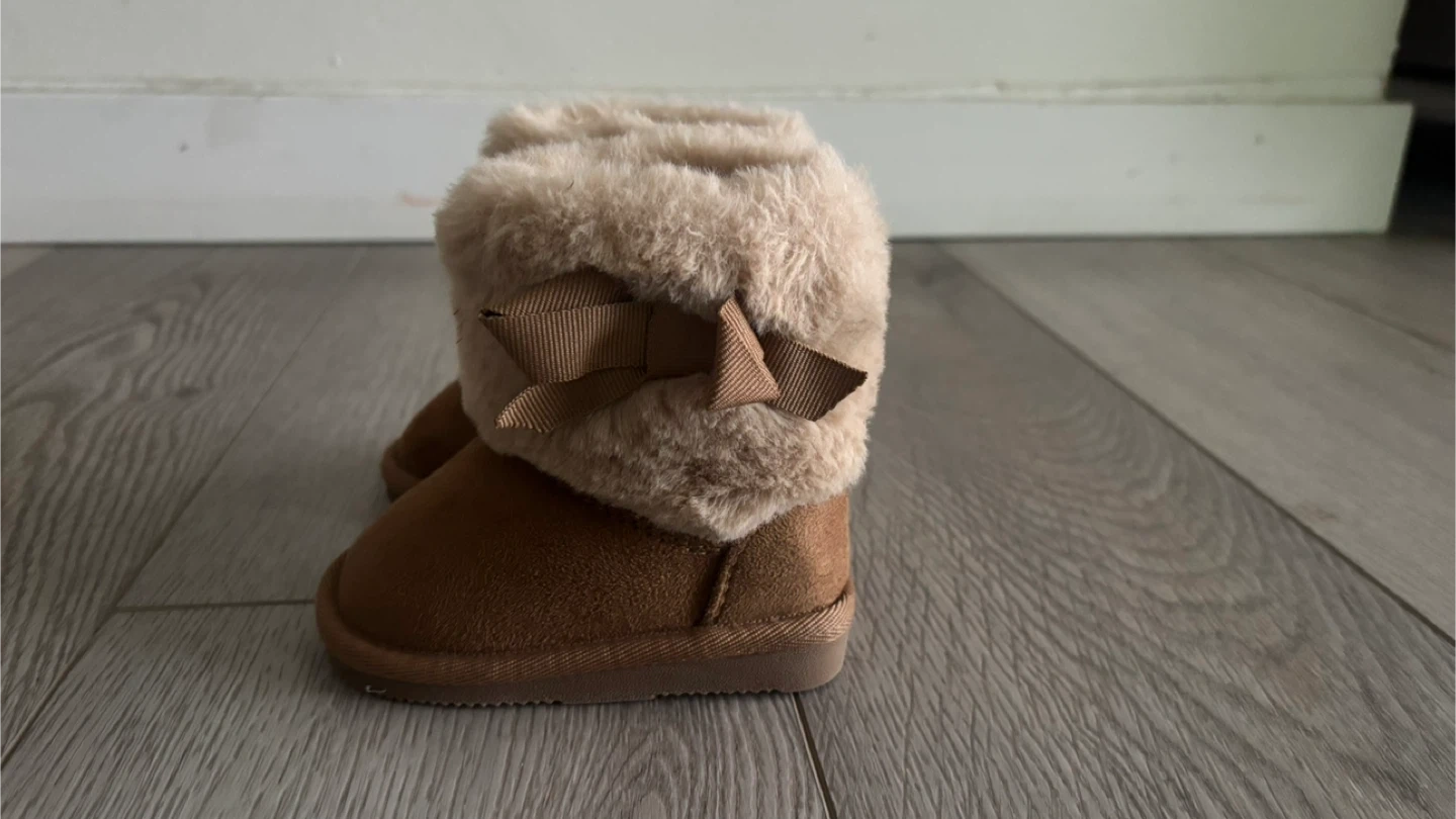 These toddler boots are super cute and cozy! They're a size 6 and feature a soft faux suede exterior with a plush faux fur trim. Perfect for keeping little feet warm during the colder months!