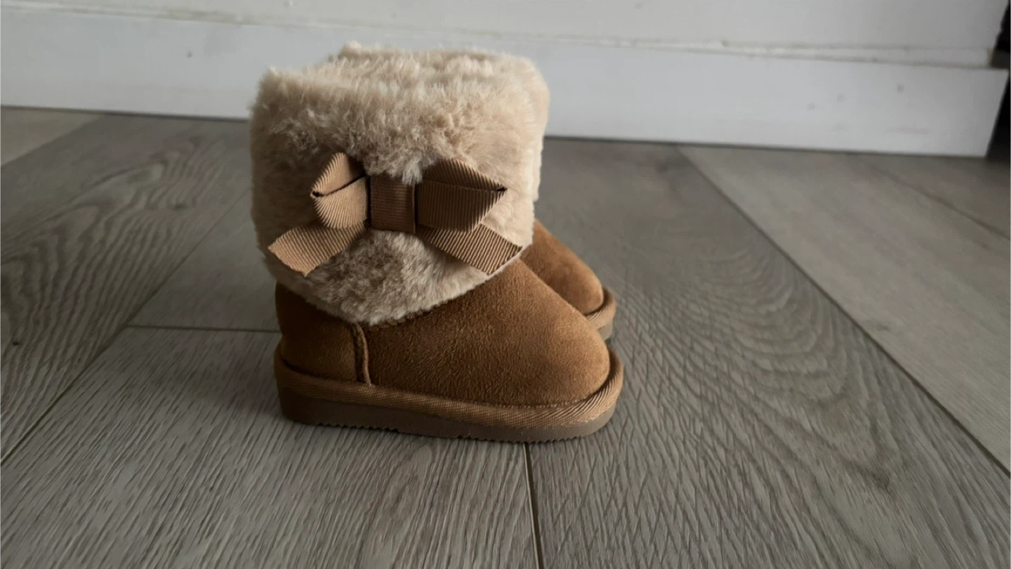 These toddler boots are super cute and cozy! They're a size 6 and feature a soft faux suede exterior with a plush faux fur trim. Perfect for keeping little feet warm during the colder months!
