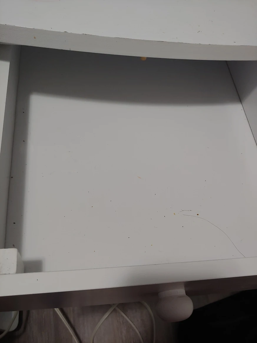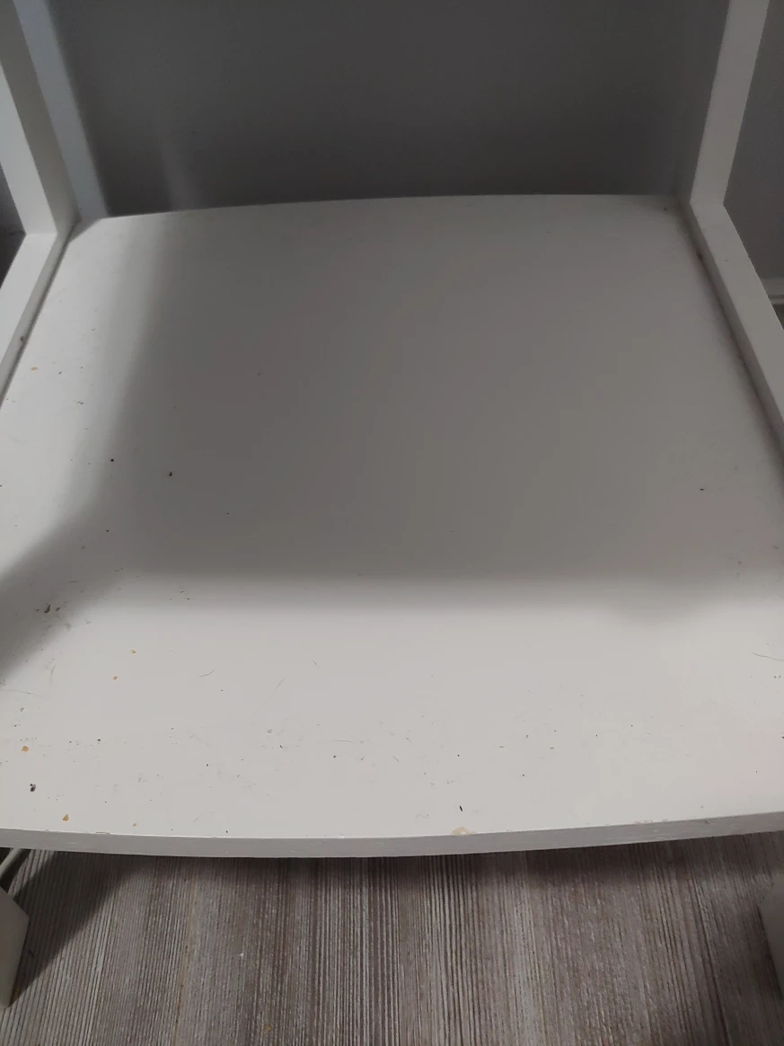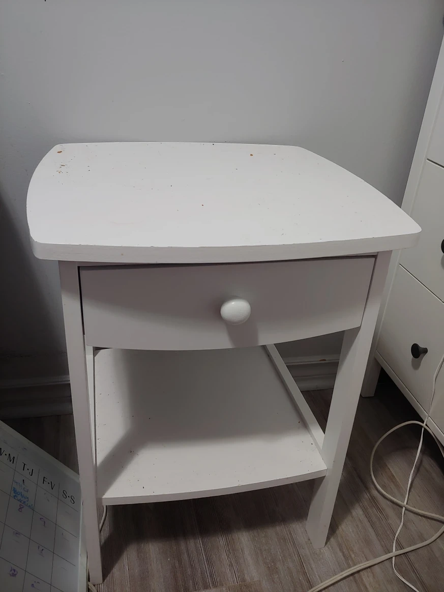 White nightstand. Features a single drawer and a lower shelf. Great for a bedside table to keep your nightly essentials within reach.