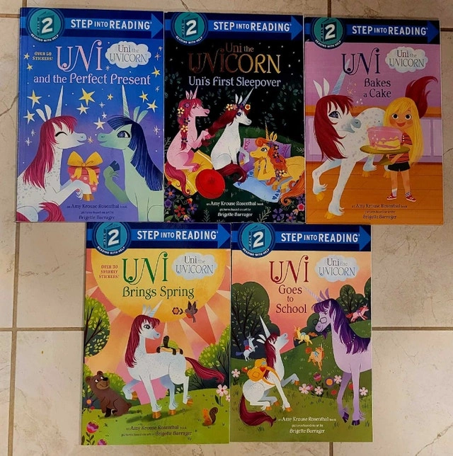 Set of 5 "UNI the Unicorn" books, Scholastic "Step into Reading" STEP 2. Good used condition, read only once. $10 for the set. Books can also be sold separately for $3 each. Pick up in Georgetown or meet up along the Hwy 401 corridor in Mississauga or Toronto.