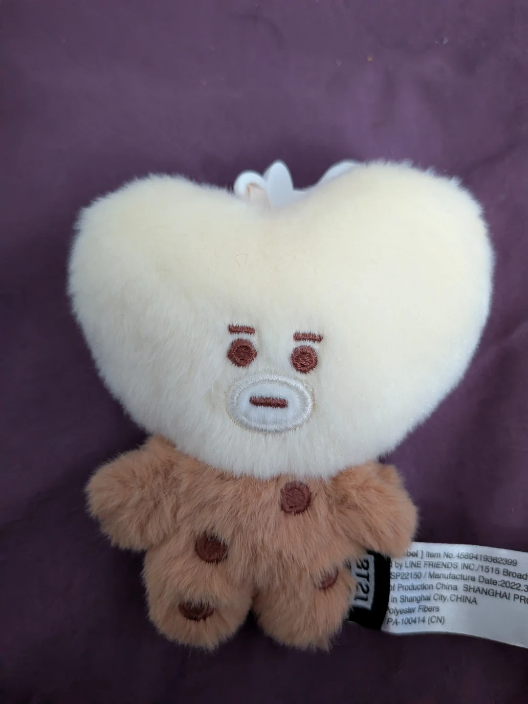 This is a LINE FRIENDS BT21 TATA plush toy. It's made of polyester fibers. Manufacture date is March 2022. It's super soft and squishy!