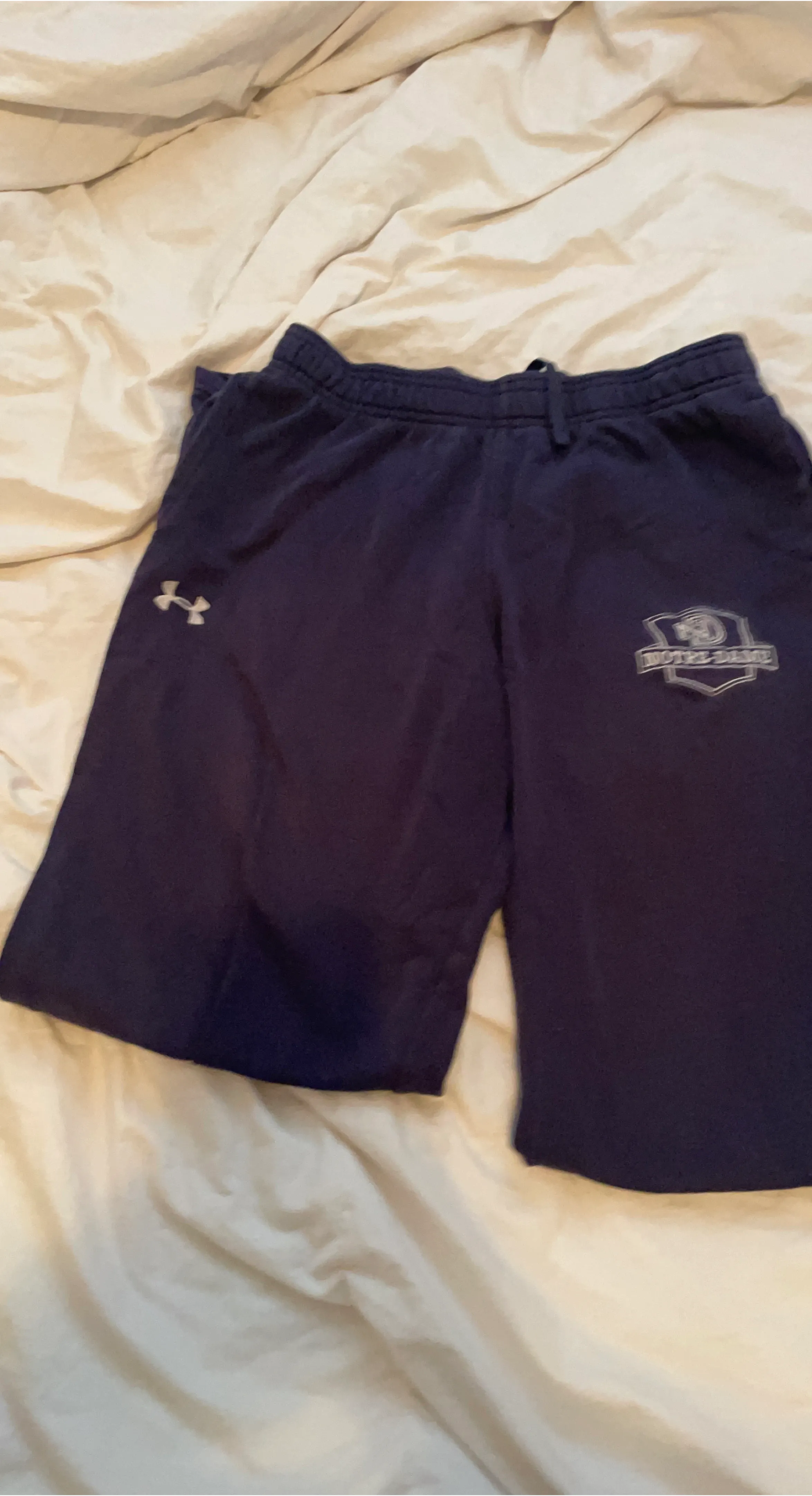 Je vends un pantalon Under Armour bleu marine. Il est en bonne condition et confortable pour l'entraînement Il y a le logo d u collège notre Notre Dame. Bienvenue les élèves du Collège