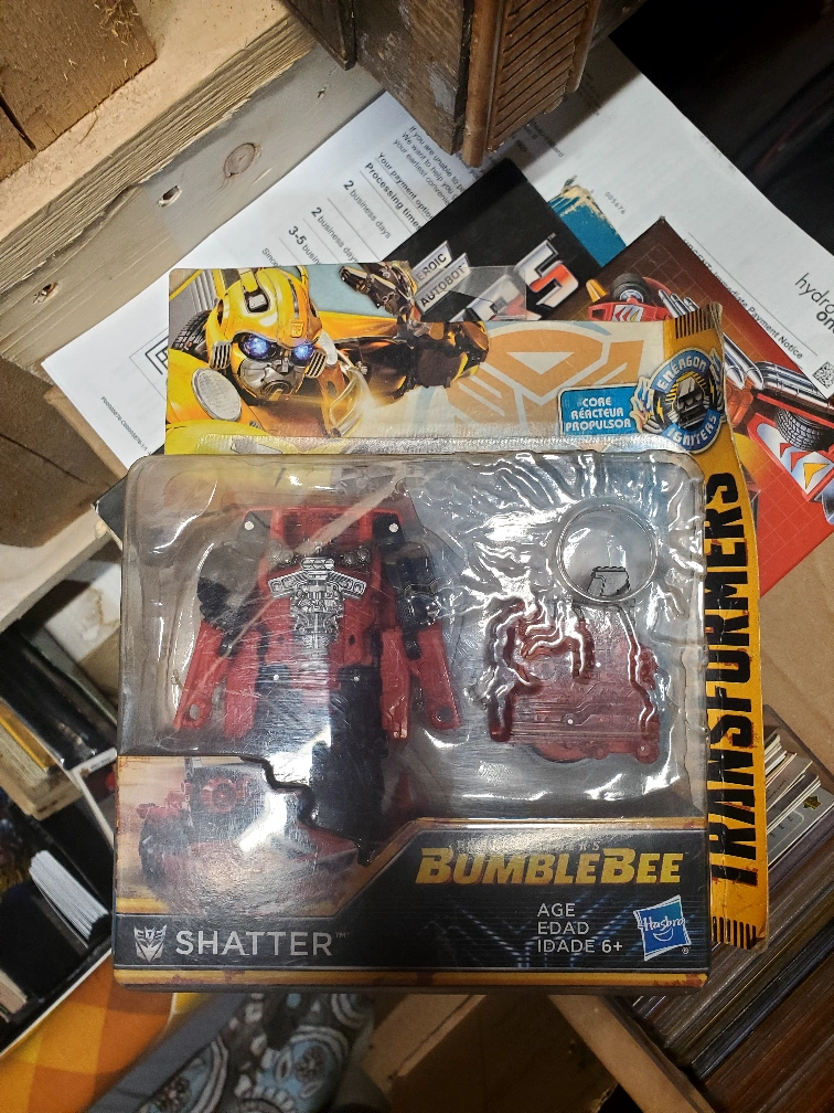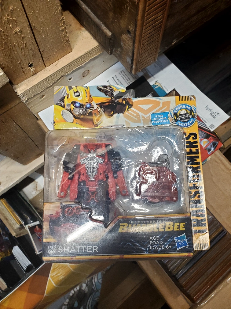 Lot of vintage and modern Transformers figures. Includes Optimus Prime, Starscream, Hot Rod, and Shatter. Figures in original packaging.
