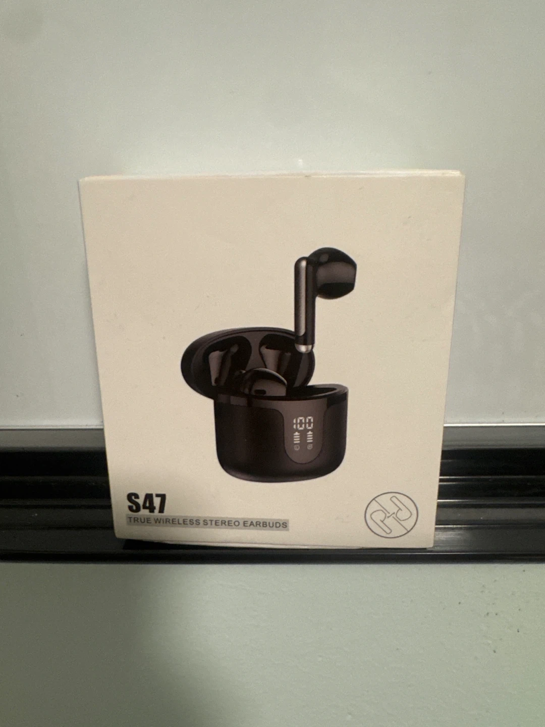 Selling a brand new pair of S47 True Wireless Stereo Earbuds! They come in the original box and include the earbuds themselves, a charging case, and a Type-C charging cable.