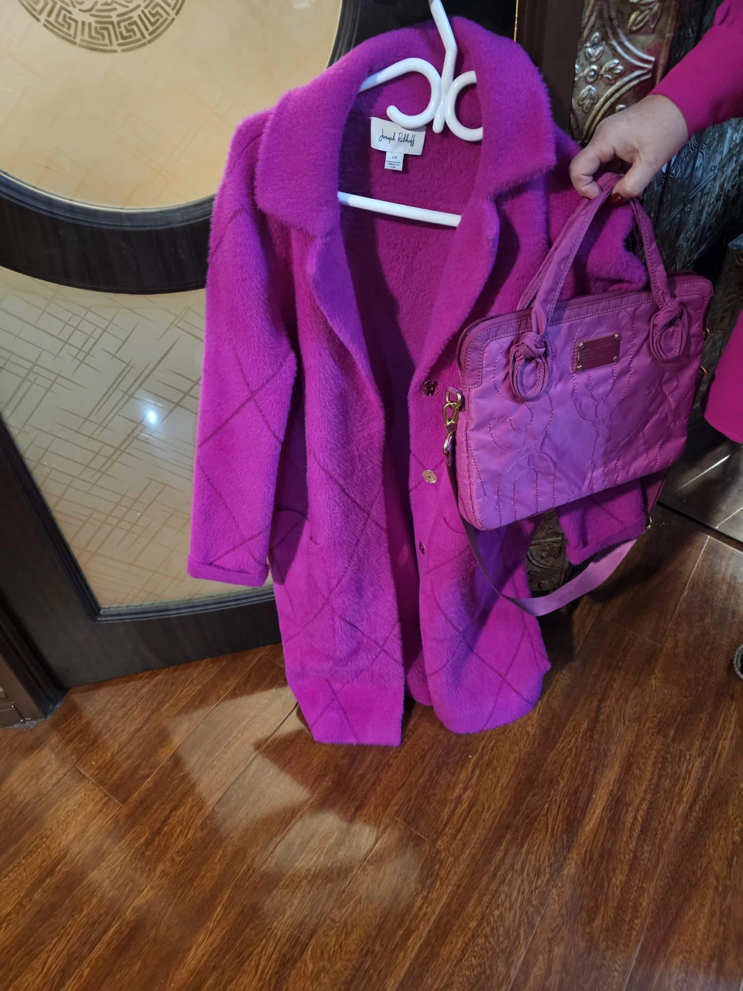 Joseph Ribkoff Pink Fuzzy Coat L