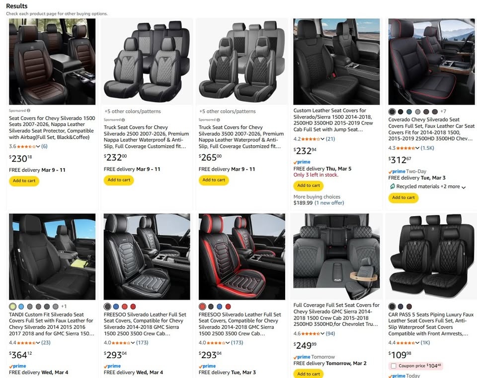 Faux Leather Seat Covers - Silverado/Sierra Crew Cab (2014-2018)