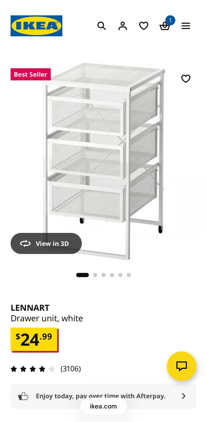 White IKEA LENNART drawer unit. Features three mesh drawers for storage. Metal construction.