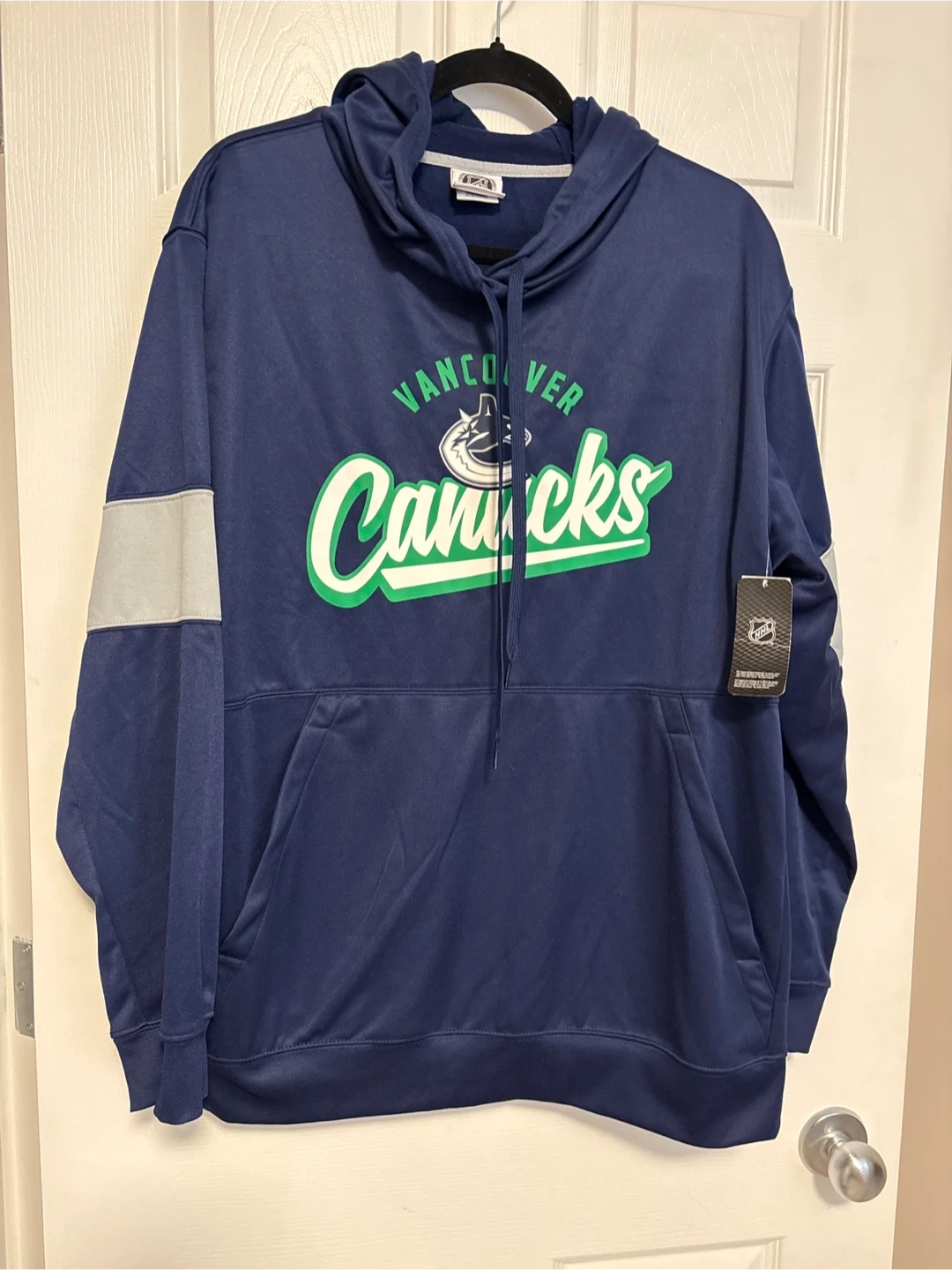 Brand New This navy blue hoodie features the Vancouver Canucks logo. It's a size XL/TG and has a front pocket. Officially licensed NHL product.