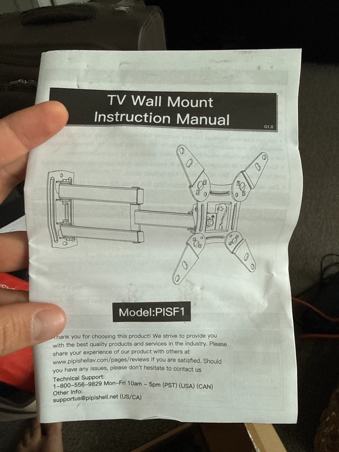 Selling a full motion TV wall mount, model PISF1. It comes with the original box and instruction manual. Perfect for mounting your TV securely and adjusting it for the best viewing angle!