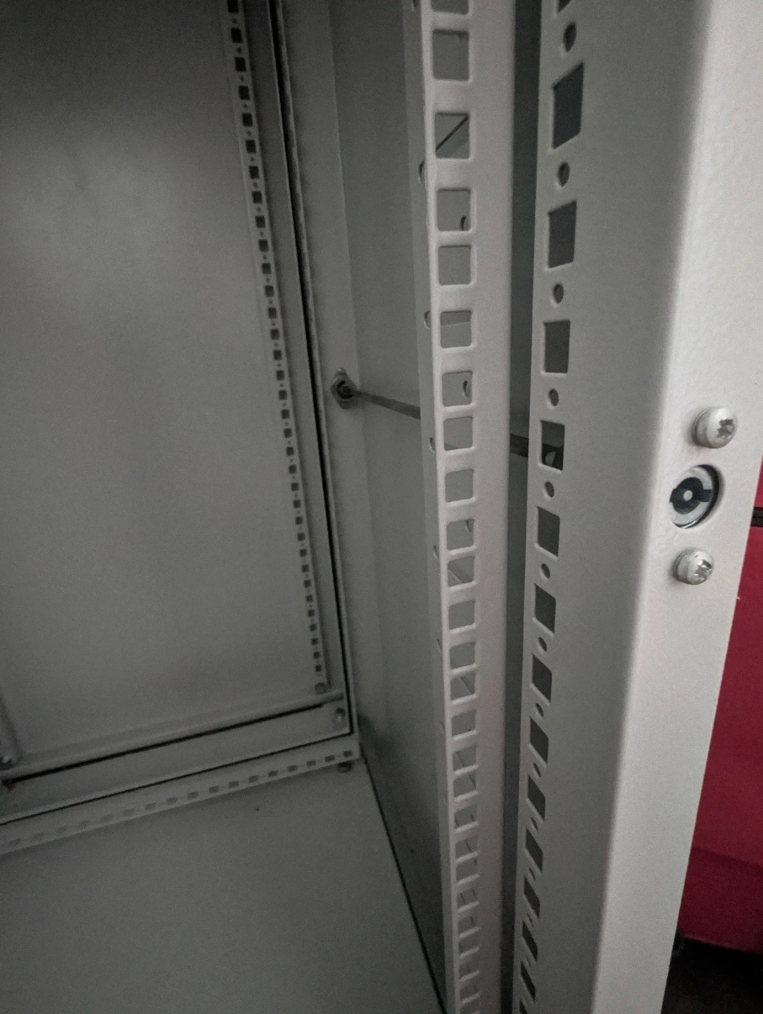 It features a designer glazed glass front door, solid top and bottom flange plates, and standard 19" vertical punched mounting rails. It is perfect for a robust home lab, a small business IT closet, or industrial networking applications.
