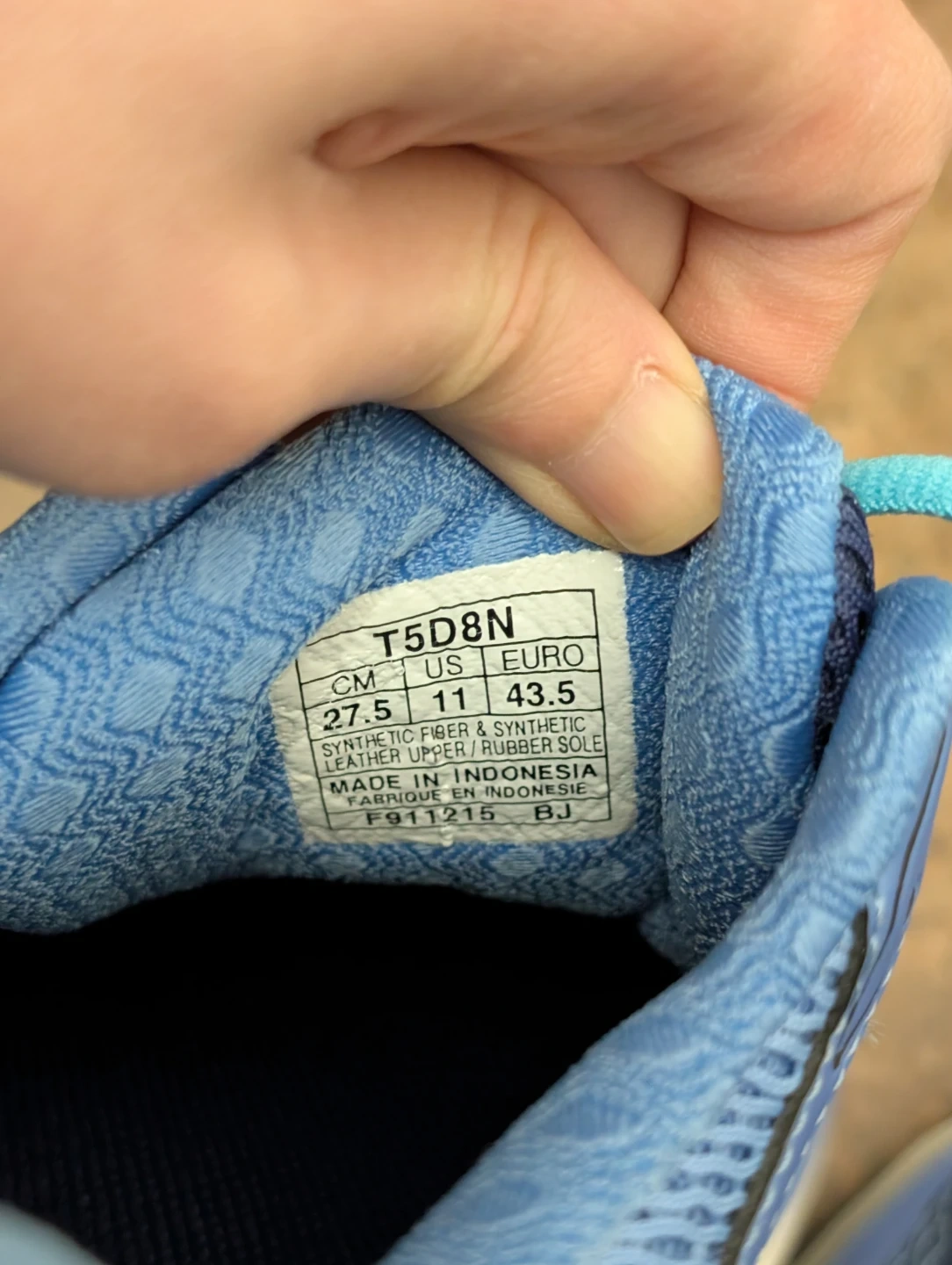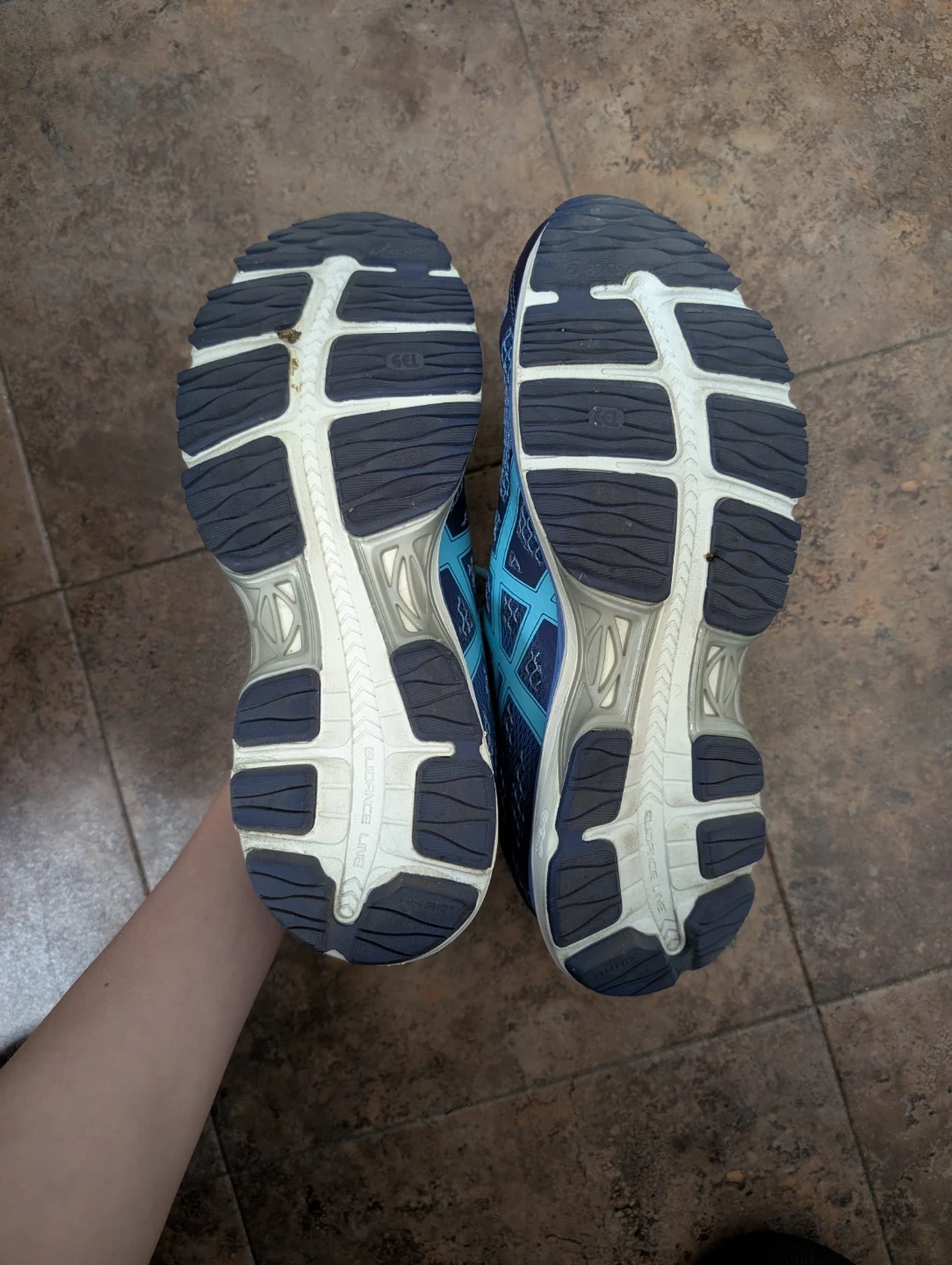 Blue Asics running shoes. US size 11, Euro size 43.5. Made with synthetic fiber and rubber sole. These are great for any kind of running!
