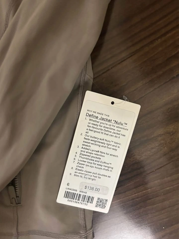 Lululemon Nulu Warm Ash Grey Define Jacket (Size 6)