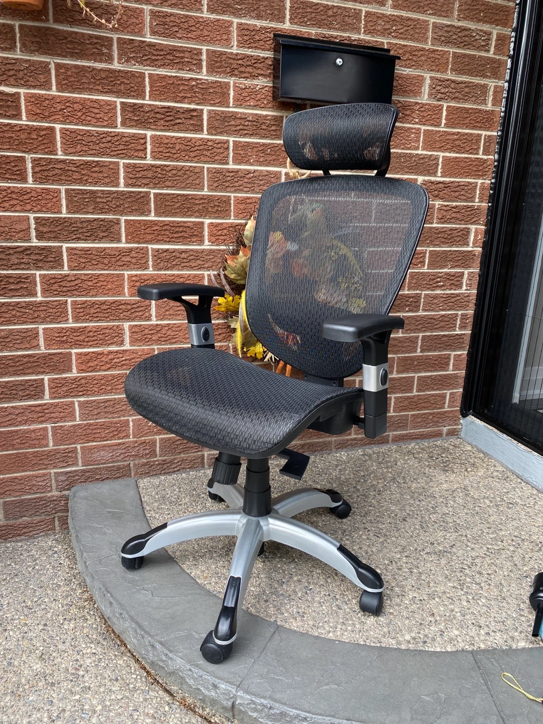 Selling a comfortable ergonomic office chair! It features a breathable mesh back and adjustable headrest for great support during long workdays. The chair is in good condition and ready for a new home. Perfect for your home office or study space