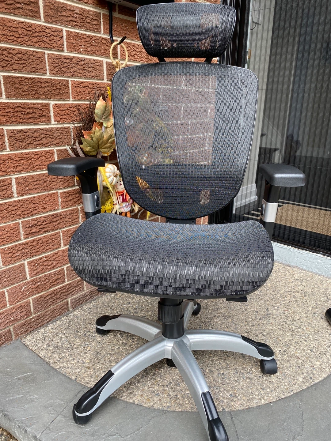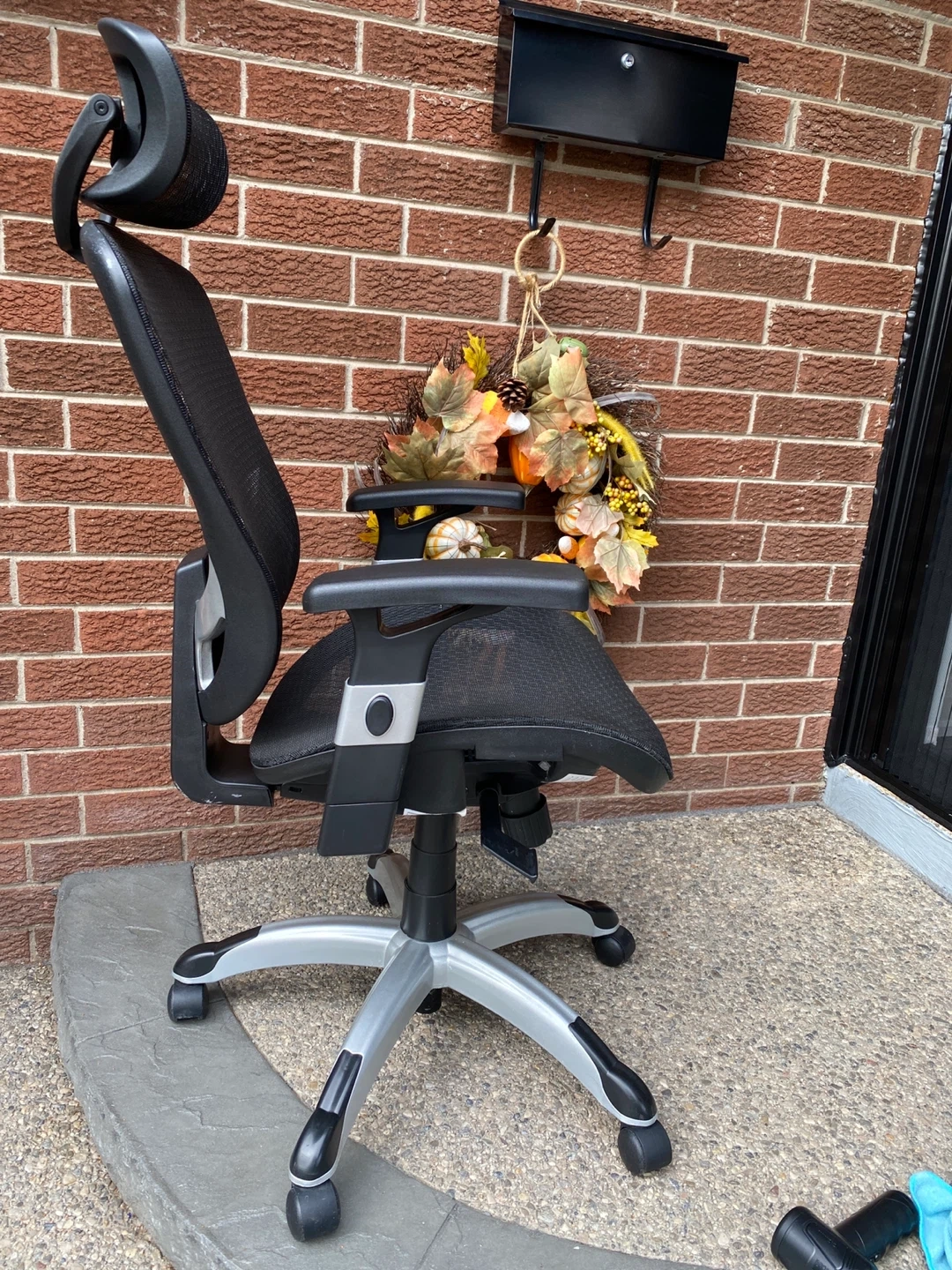 Selling a comfortable ergonomic office chair! It features a breathable mesh back and adjustable headrest for great support during long workdays. The chair is in good condition and ready for a new home. Perfect for your home office or study space