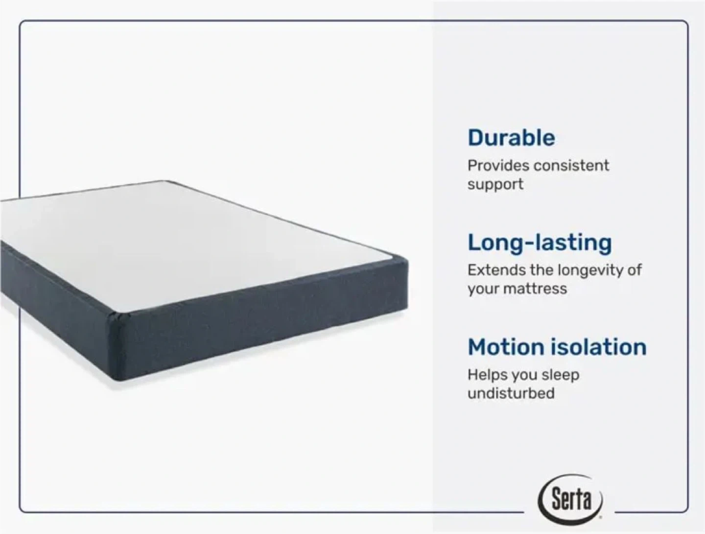 Selling a durable bed foundation by Serta! It provides consistent support and is long-lasting, extending the longevity of your mattress. It also has motion isolation, which helps you sleep undisturbed.