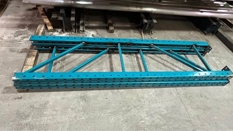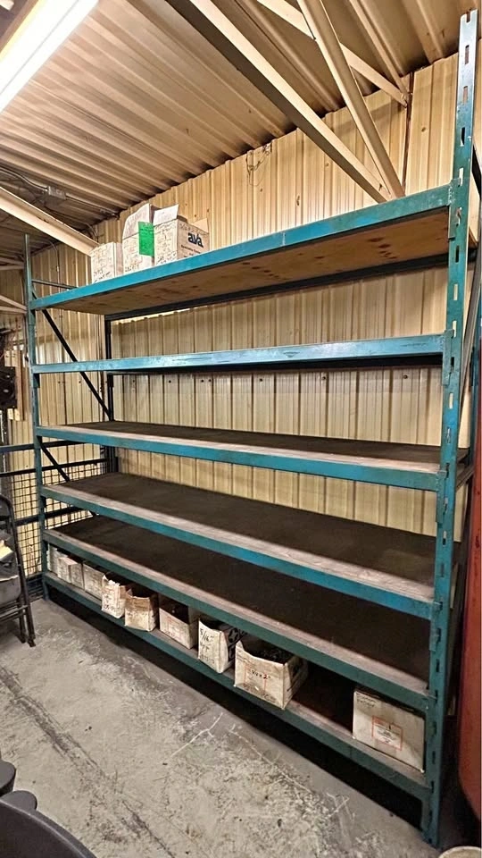 This used metal shelving unit is perfect for a garage or warehouse, ready to handle your storage needs. It has four sturdy shelves, showing some wear but fully functional, eager to help organize your space. Heavy-duty construction. Four shelves. Easy to assemble and disassemble. Size 8” x 8” x 2”.