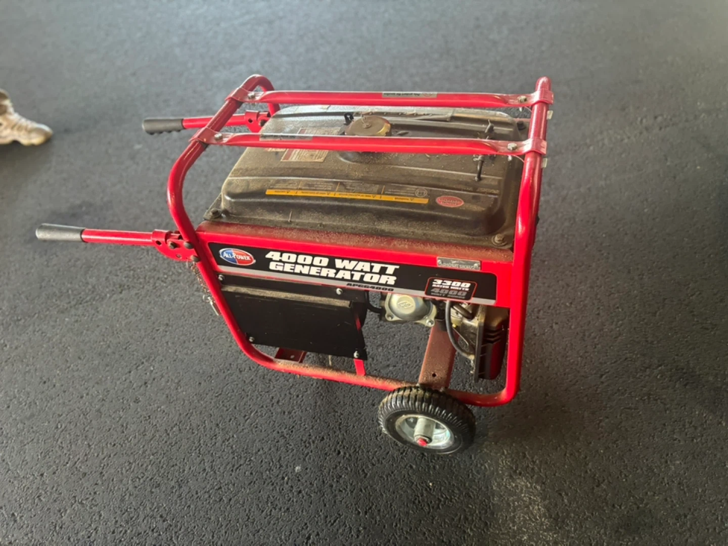 Selling an All Power America 4000 Watt Generator. It's red and looks like it's been used but still has life left in it
