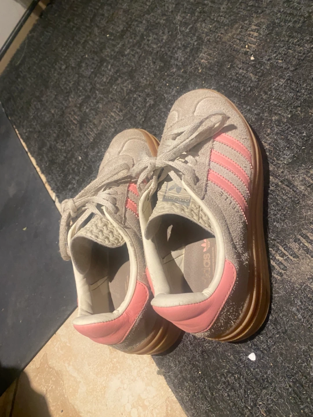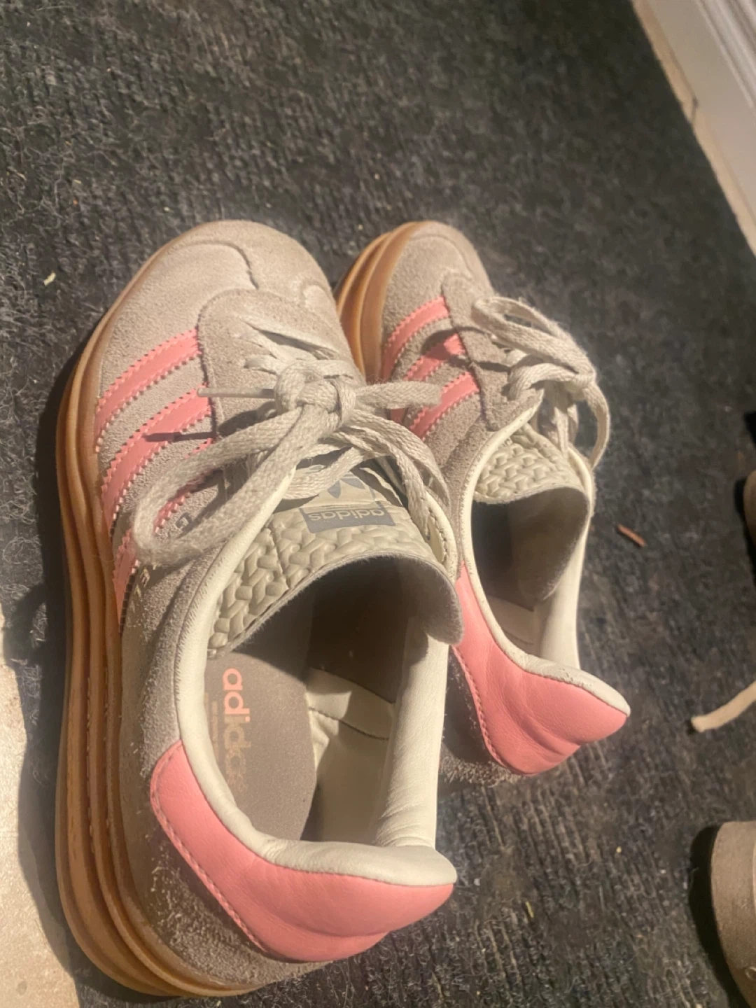 Selling a pair of Adidas Gazelle Bold J sneakers in beige and semi pink spark! They’re in great condition and ready for a new owner. Originally bought for $130 CAD.