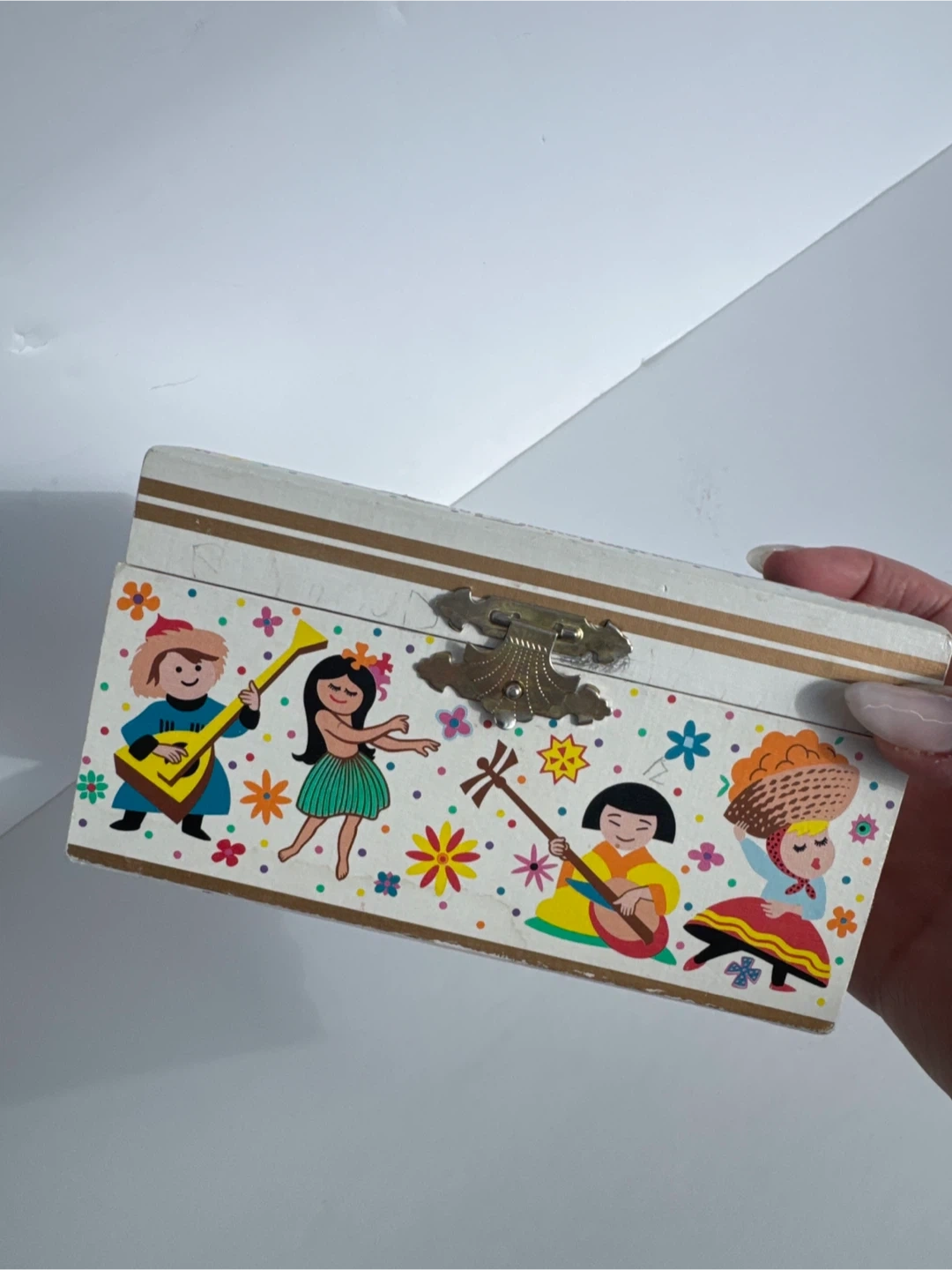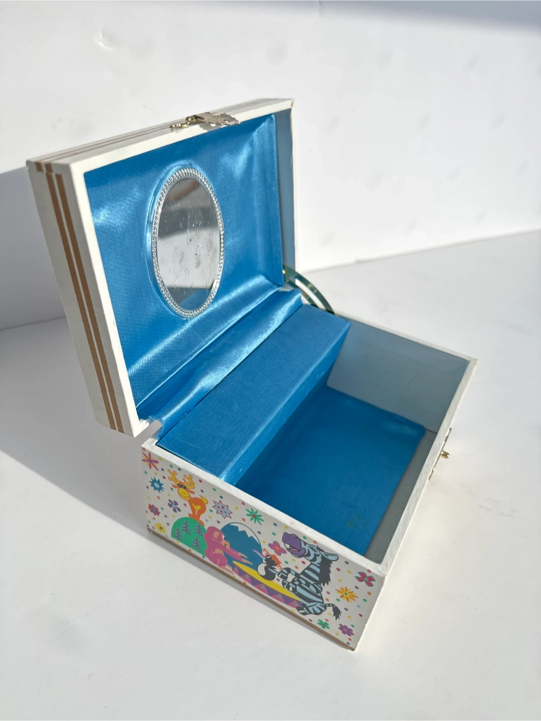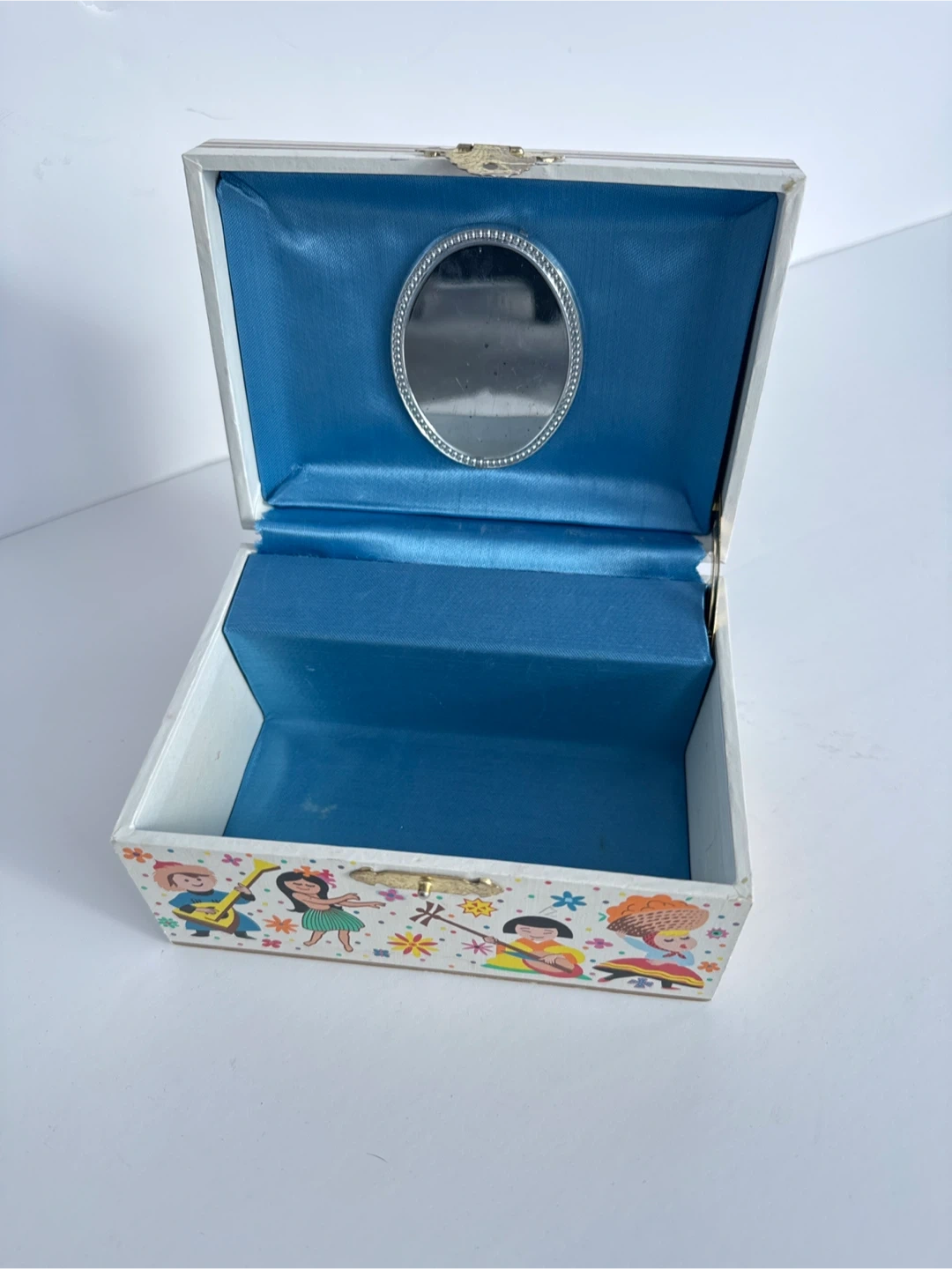 This is an adorable vintage Disney music box featuring the "It's a Small World" theme from Walt Disney World. It includes a small mirror inside and a winding key on the side. The interior is lined with blue satin. ⭐️nearest major intersection Eglinton & Bayview for easy pick-up⭐️