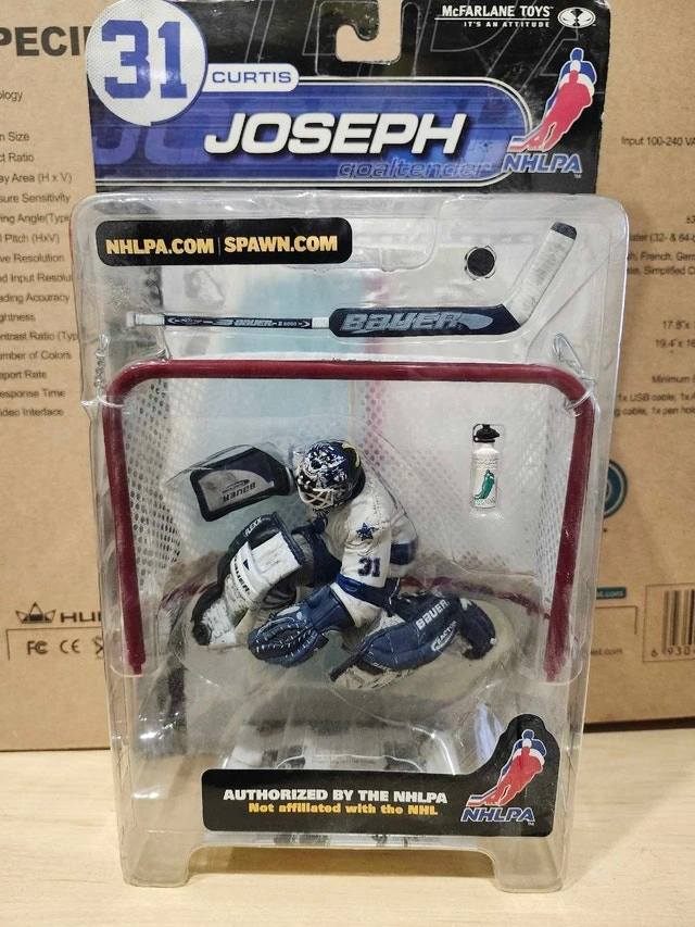 This is a McFarlane Toys Curtis Joseph Goaltender NHLPA figure. The item is used, but still in great condition! Display it in your office or add it to your hockey collection. Curtis Joseph Goaltender NHLPA. Let me know if you're interested!