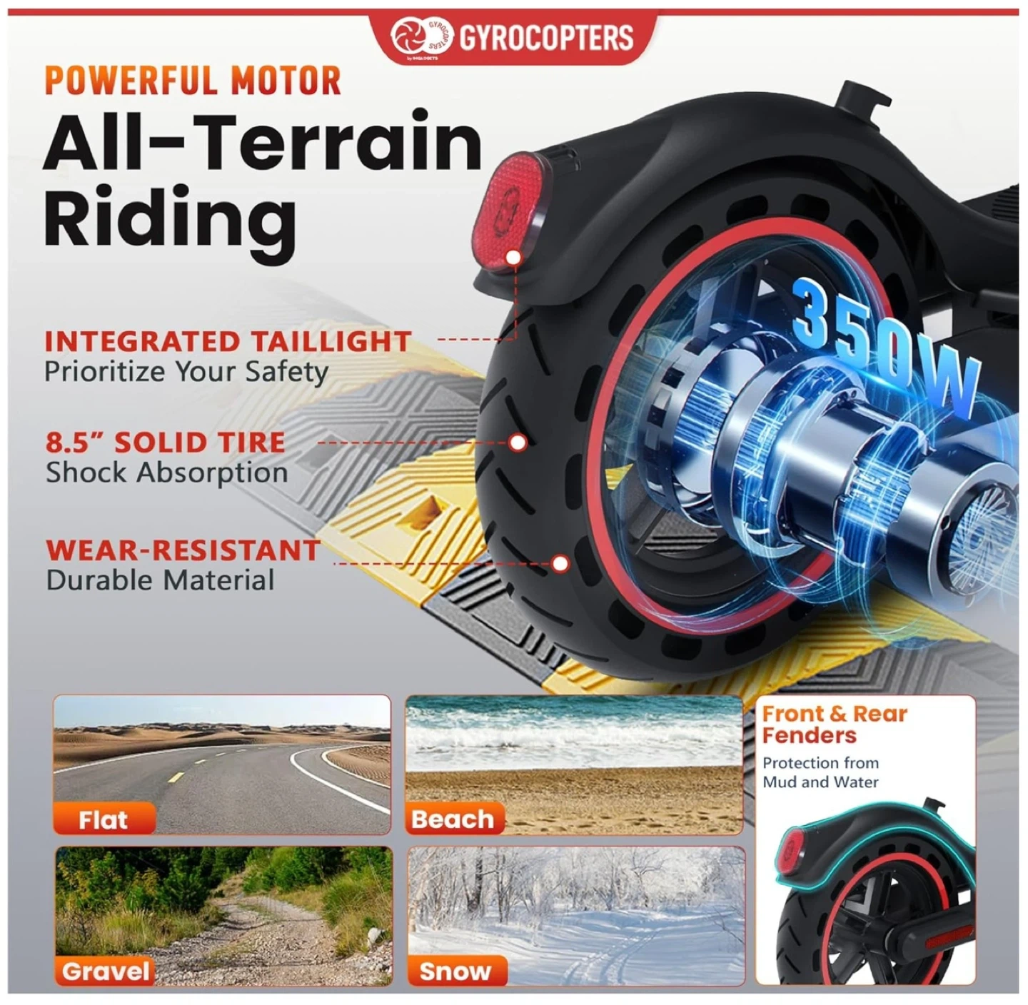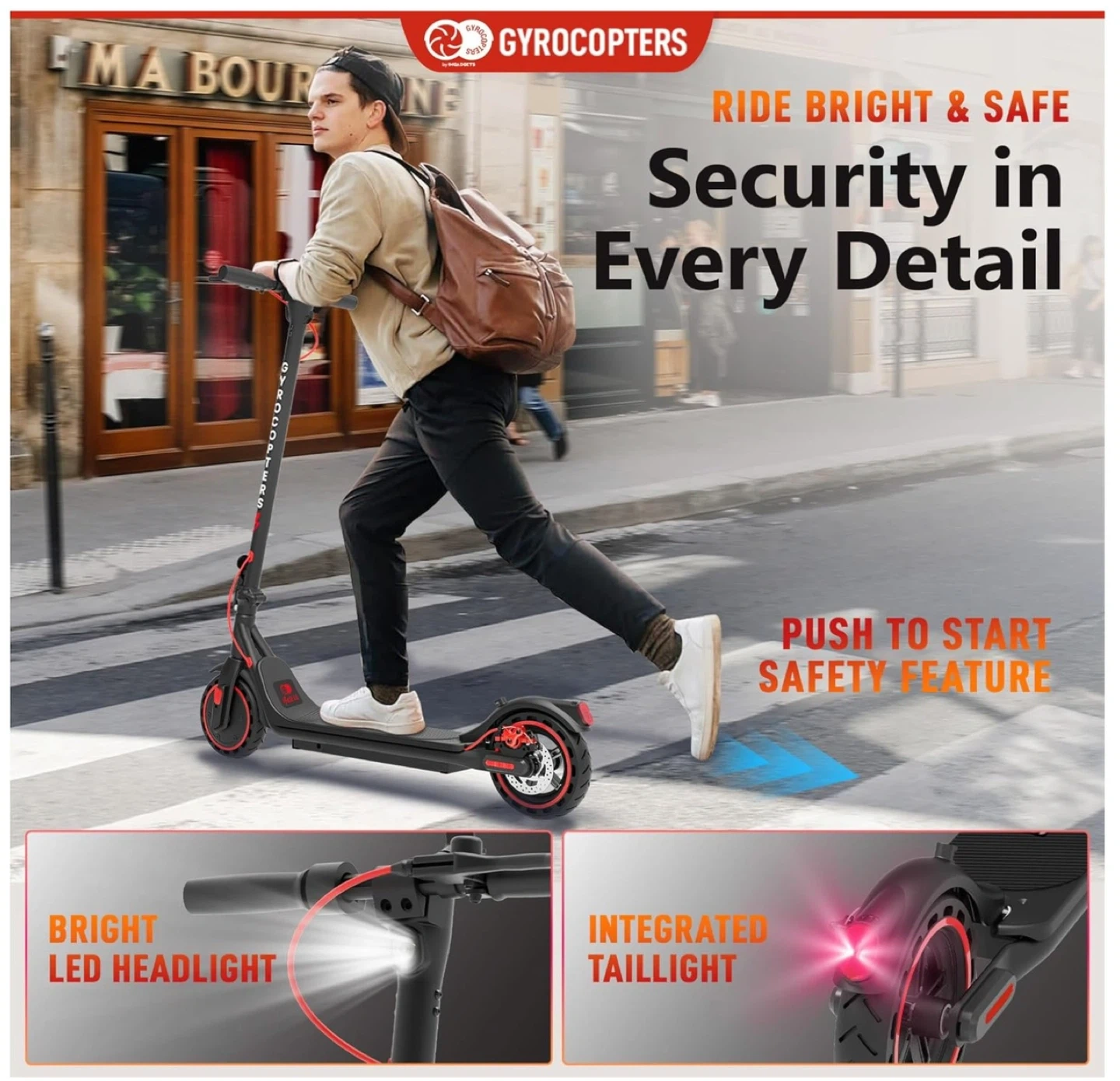 • Features: LED display, solid tires, powerful motor (features visible on the box).