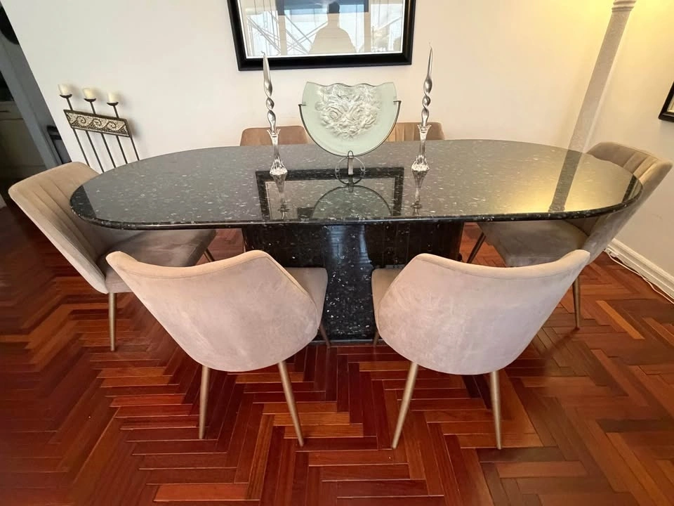 7.5 Ft Black Granite Dining Table Seats 8 + Matching Bar
