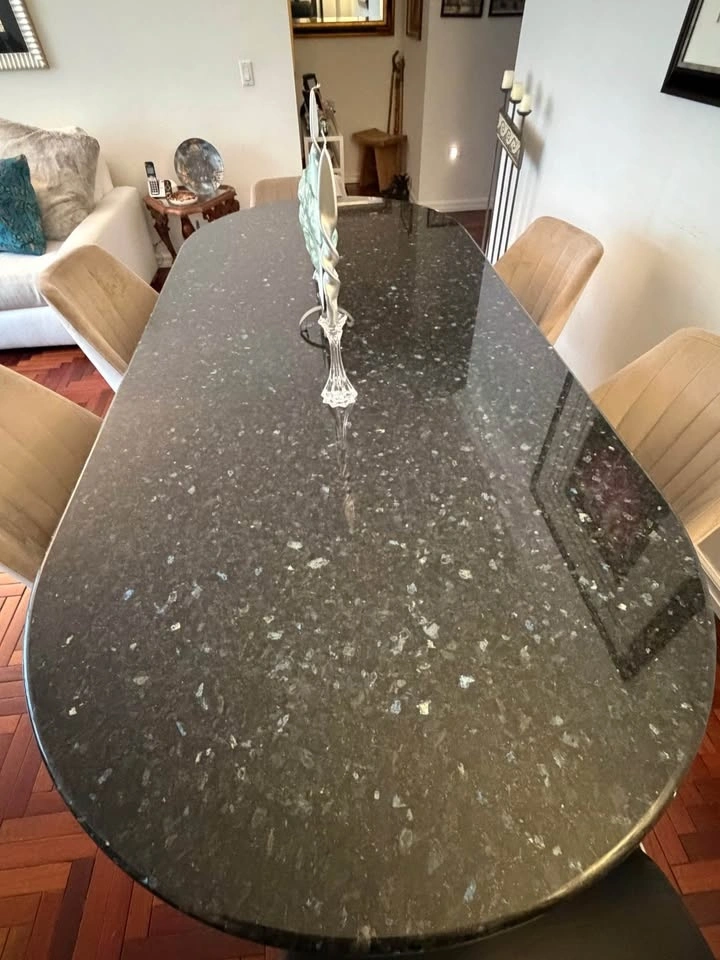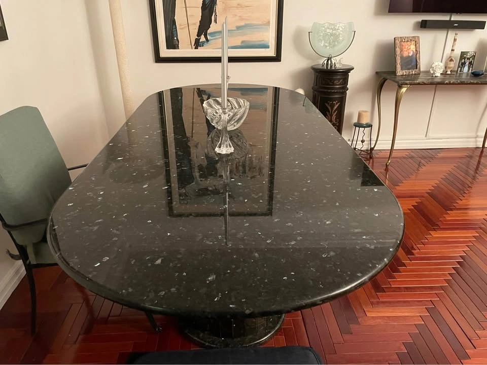 7.5 Ft Black Granite Dining Table Seats 8 + Matching Bar