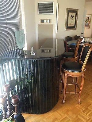 Beautiful 7-1/2 Foot Long (90“) Black Granite Dining Table with opalescent flecks on a black granite base, comfortably seats 8 people. Table is 90” Long x 40” wide, 31.5” tall. In great, like new condition. Plus matching, Beautiful 6 Foot x 3 Foot L-Shaped Black Granite Bar with opalescent flecks on black glass base with Extra Large Storage in 3 Shelves Across Entire Inside of Bar, along with a Large Storage Drawer and Swivel Door. Bar is 43” tall, 18” deep. Custom made, in great, like-new condition. Or Best Offer.