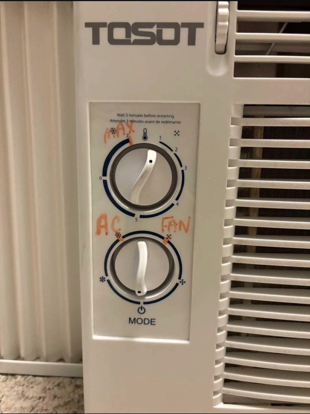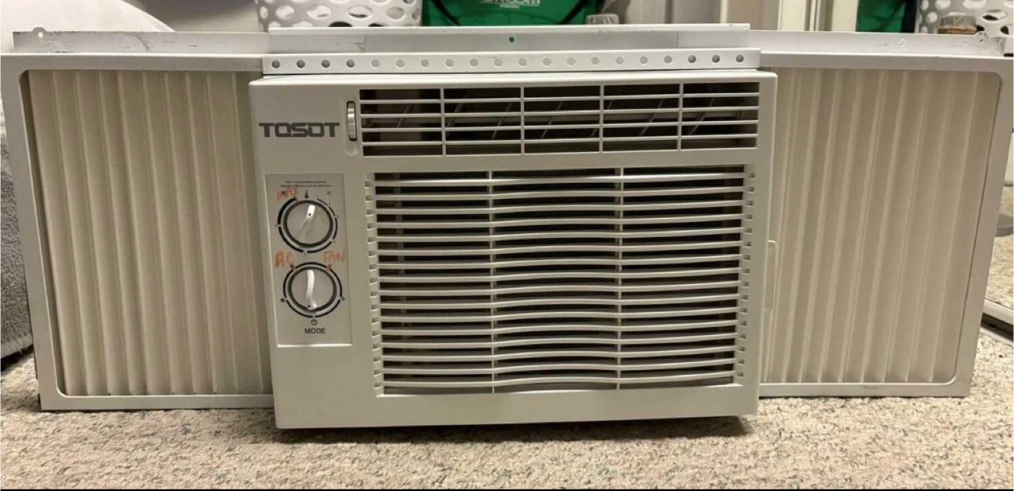 This is a TOSOT window air conditioner with 5000 BTU cooling capacity. It has multiple fan and mode settings for optimal comfort. The unit comes with side panels for installation. Power input is 450W. Hardly used. Pick up in Summerhill Area. Asking $50