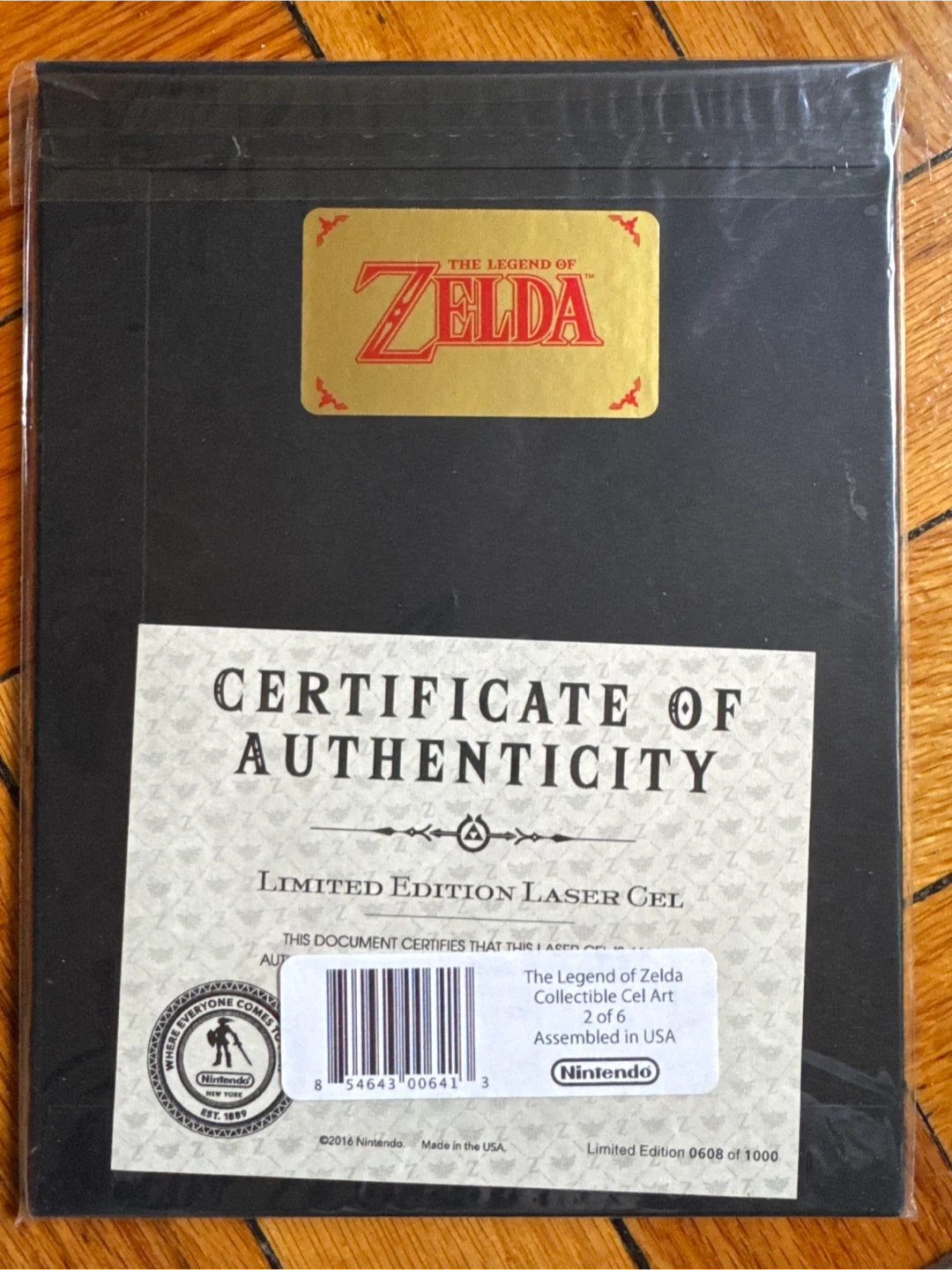 This is a limited edition laser cel art piece from The Legend of Zelda. It's officially licensed by Nintendo and comes with a certificate of authenticity. This collectible is number 2 of 6 in its series, with only 1000 made worldwide. It's a fantastic piece for any Zelda fan!