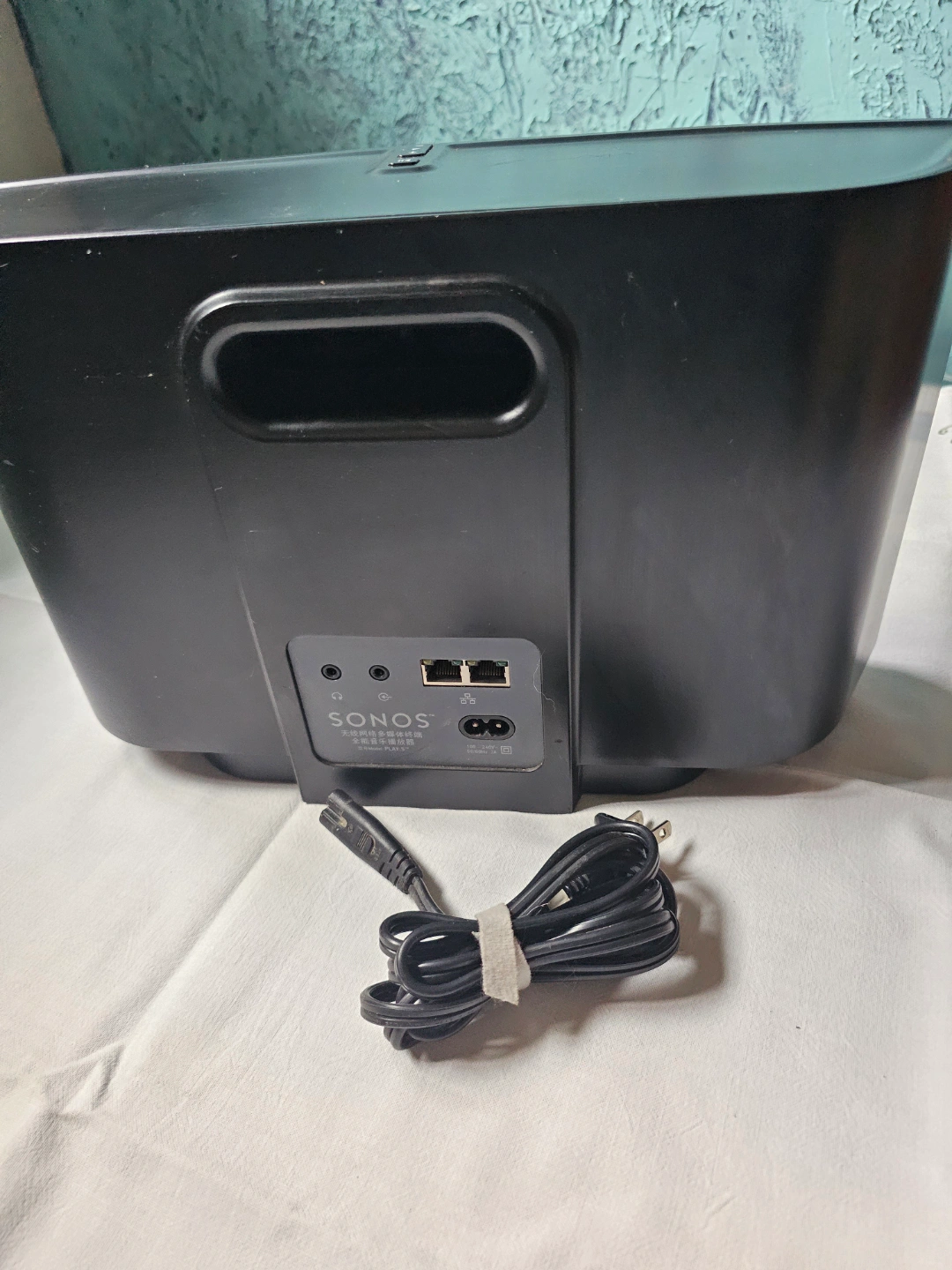Black wireless speaker. Includes power cord. Some minor wear. Excellent sound quality. Easy setup.Priced to sell.