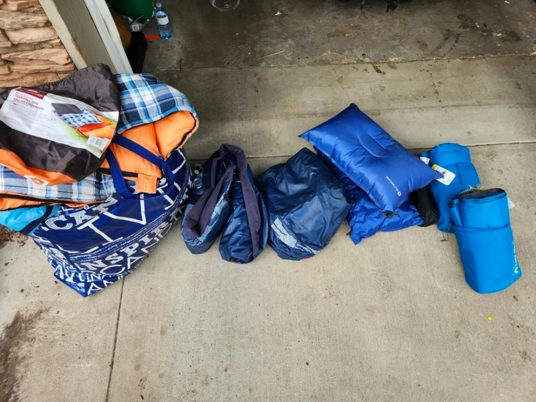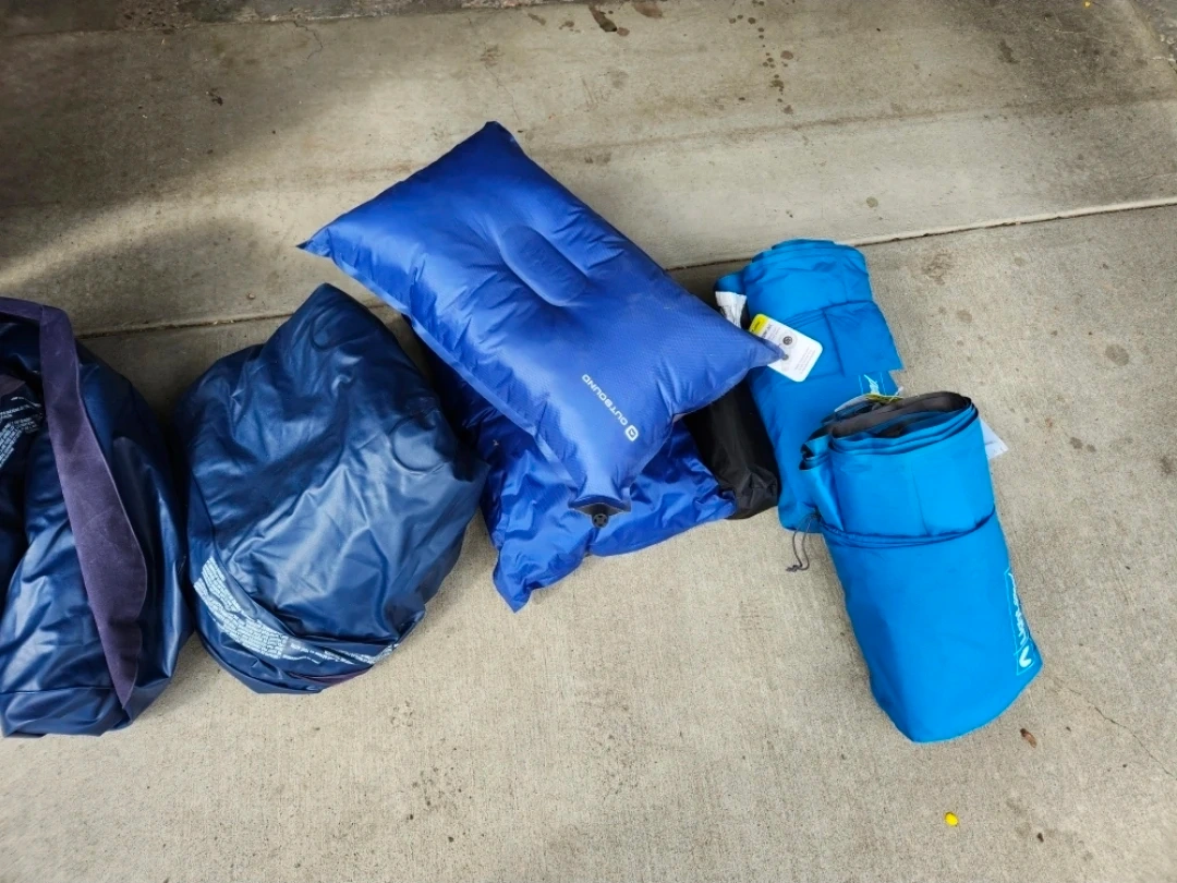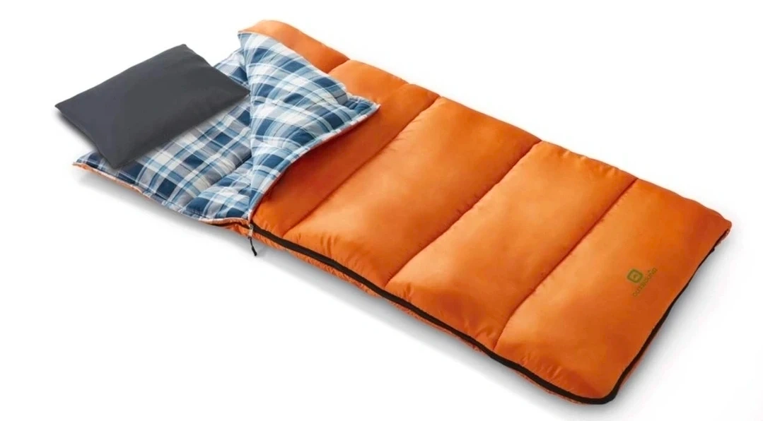 Selling an Outbound sleeping bag with a blue plaid interior and an orange exterior! Also included is a blue Lightspeed pillow. Perfect for camping or sleepovers