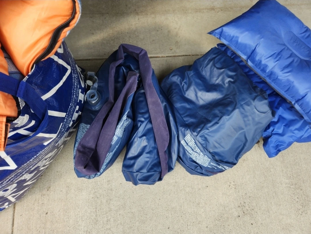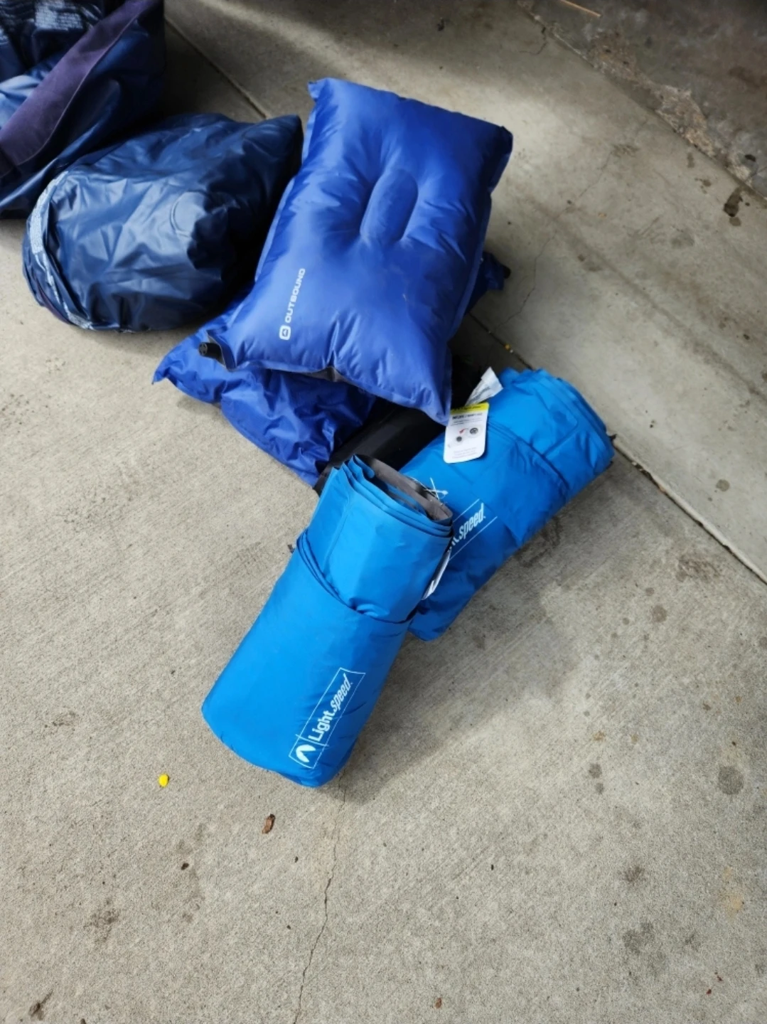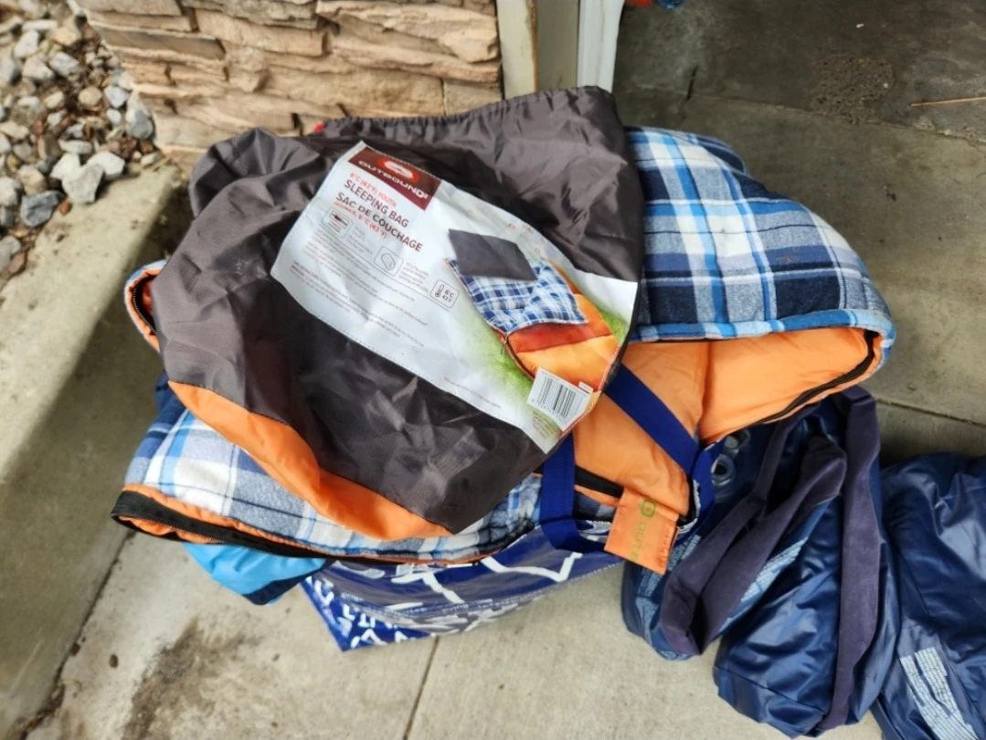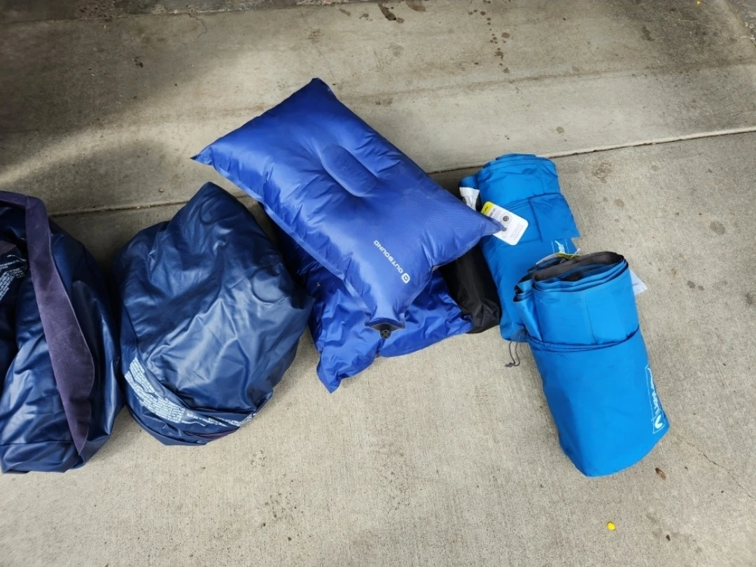 Selling an Outbound sleeping bag with a blue plaid interior and an orange exterior! Also included is a blue Lightspeed pillow. Perfect for camping or sleepovers