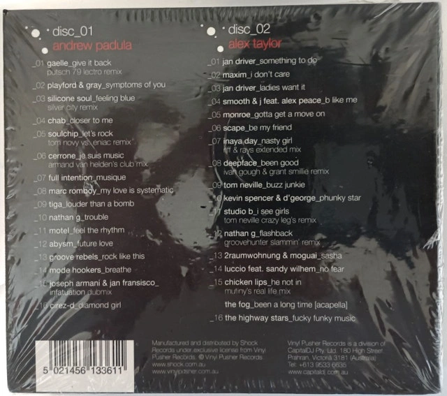Still sealed in original shrink wrap, this 2005 Australian compilation of house club hits mixed by DJs Andrew Padula & Alex Taylor features 32 tracks on 2 CDs. Able to meet up in downtown Kitchener.